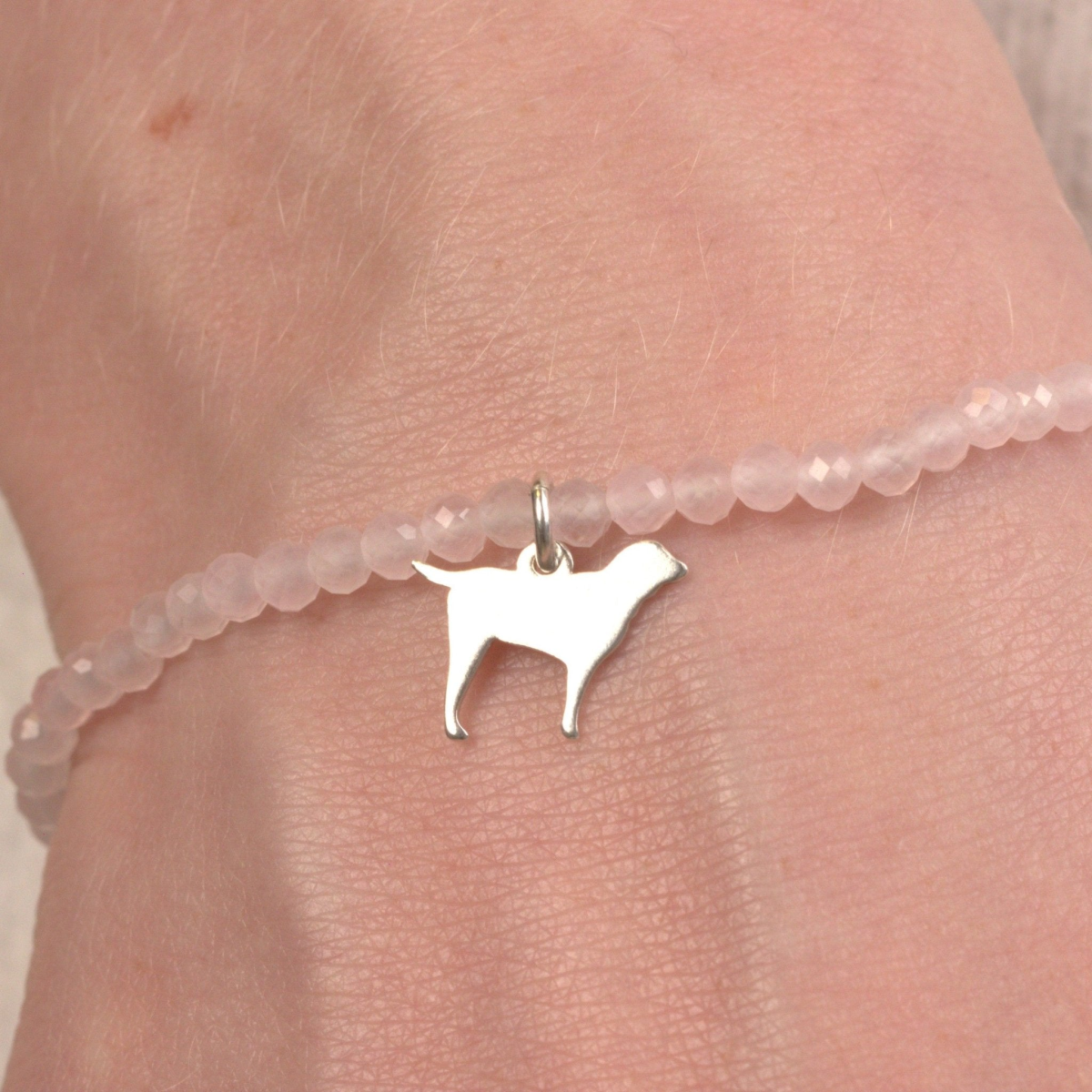 Celebrate your beloved Labrador with this personalised Labrador Silhouette bracelet made with your choice of semi precious stones. Whether it’s a thoughtful birthday gift for a dog mum or a heartfelt keepsake for a pet parent, this bracelet is a beautiful way to honour the special bond you share. Choose from a Black Onyx, Rose Quartz, Red Aventurine, Amethyst, Opal or Turquoise bracelet.