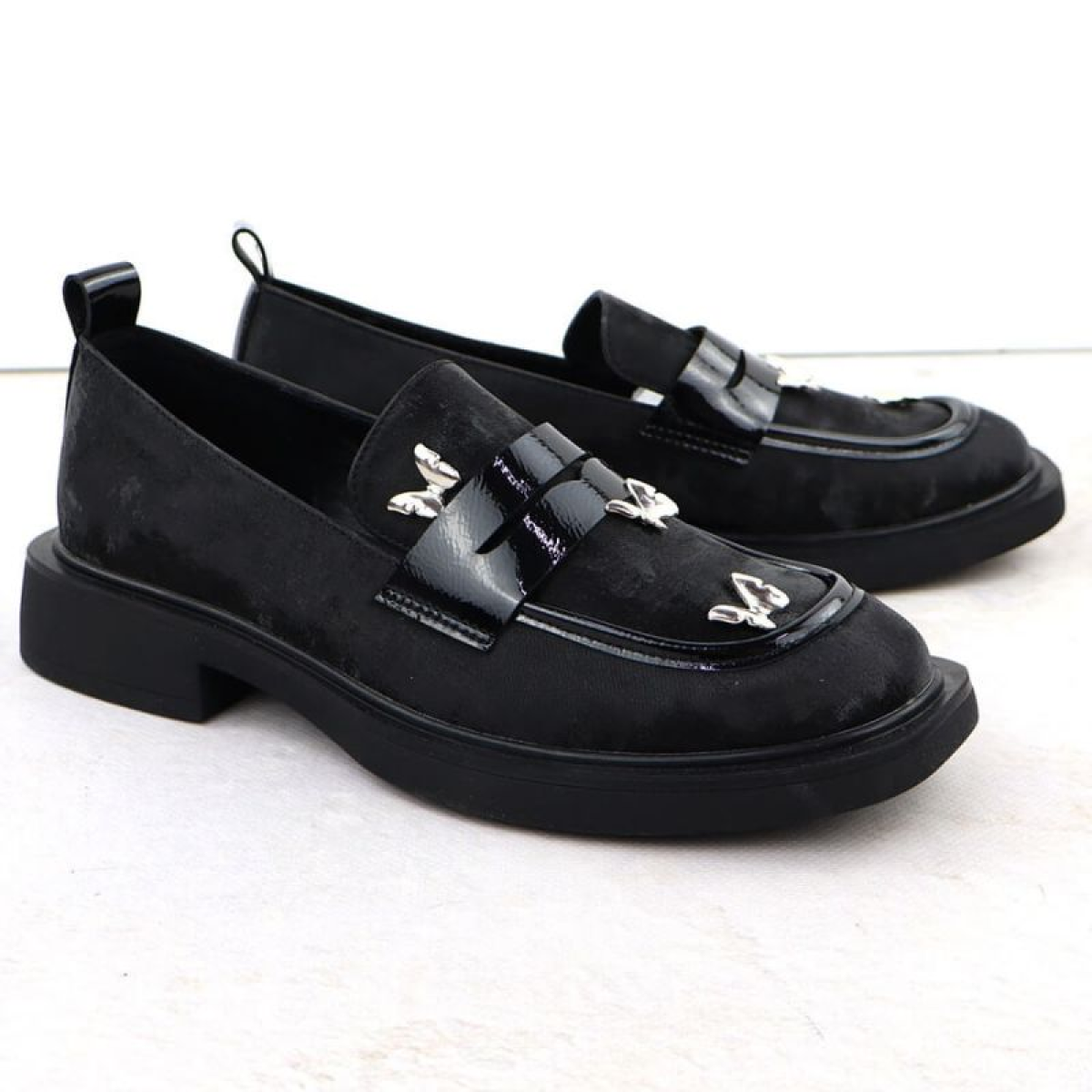 Ladies' loafers with butterflies, black, Potocki SZ12650