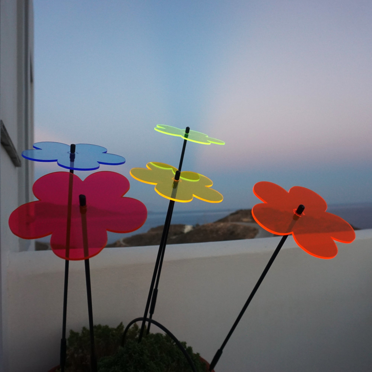 SunCatcher transform short wave spectral light we cannot see into long wave visible light. Accordingly, they are at their brightest, when there is less visible light around us. In the early hours as well as in the late hours of the day or when the sun is hiding behind clouds they will gather the light we cannot see and bring it back to us the brightest red, green, yellow orange and blue, just when we miss it most. SunCatcher work all year long and do not need any battery or power supply. Just a little bit of daylight is enough to start them glowing.