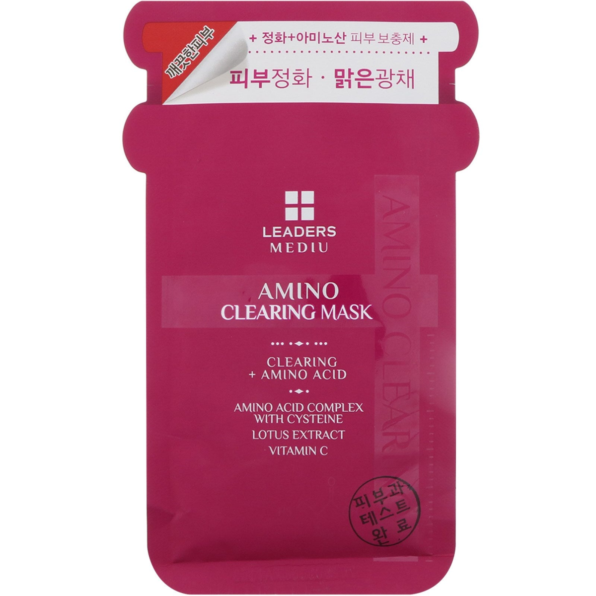 Clearing + Amino Acid Amino Acid Complex with Cysteine Lotus Extract Vitamin C All Skin Types Leaders Mediu's Amino masks contain 17 different types of amino acid, which are natural moisturizing factors, Amino masks help to moisturize, protect, and soothe the skin by supplementing the essential ingredients for skin composition. Recommended for: Dull skin with dark circles, blemishes, or freckles Aging skin Features: Vitamin C and lotus flower extract protect the skin from harmful environmental ingredients and create clear skin. By purifying the skin, it helps to revitalize and illuminate dull skin.