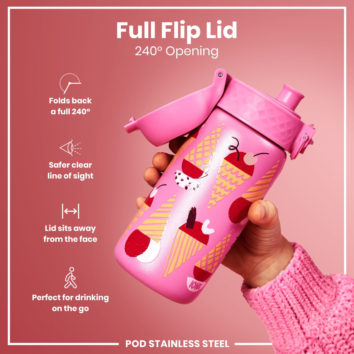 Leak Proof Kids Water Bottle, Stainless Steel, Ice Creams, 400ml (13oz)