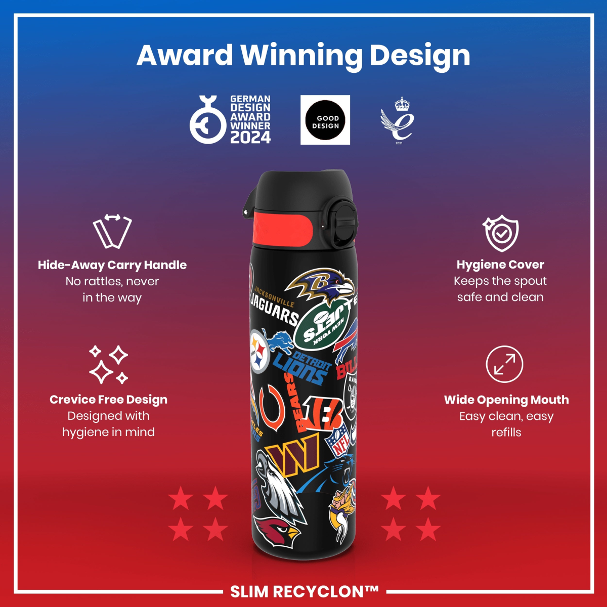 Leak Proof NFL Water Bottle, Recyclon, Patch Logos, 500ml (18oz)