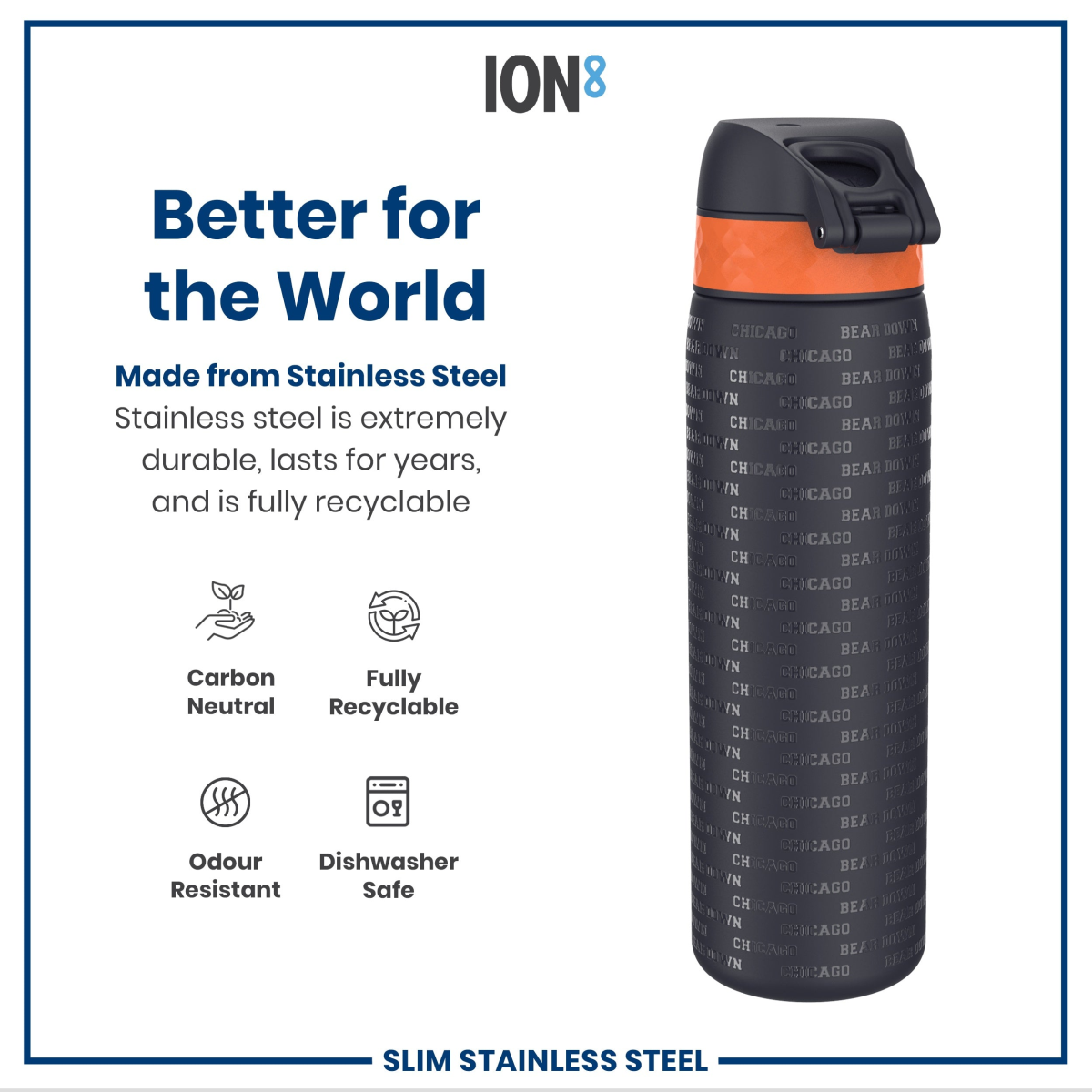 Leak Proof NFL Water Bottle, Stainless Steel, Chicago Bears, 600ml (20oz)