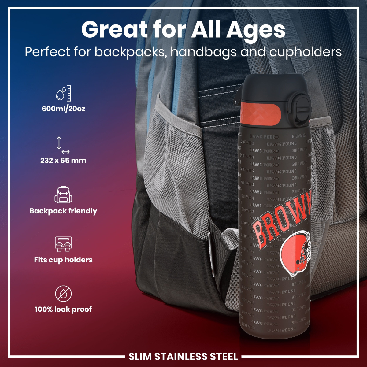 Leak Proof NFL Water Bottle, Stainless Steel, Cleveland Browns, 600ml (20oz)