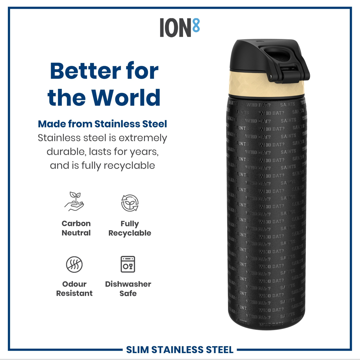 Leak Proof NFL Water Bottle, Stainless Steel, New Orleans Saints, 600ml (20oz)