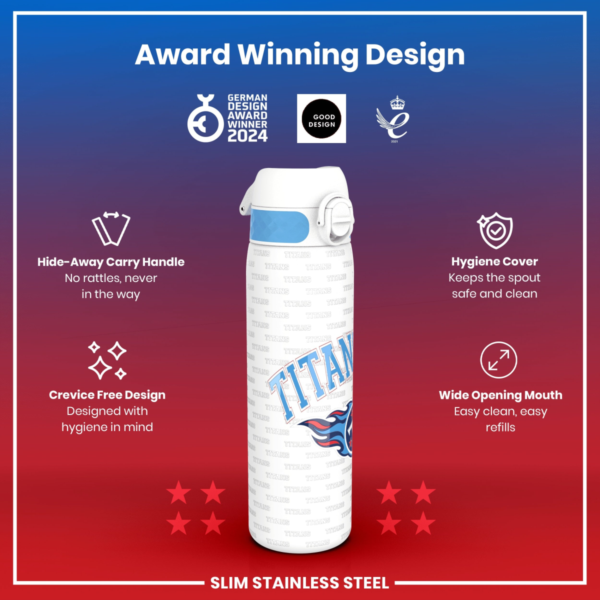 Leak Proof NFL Water Bottle, Stainless Steel, Tennessee Titans, 600ml (20oz)