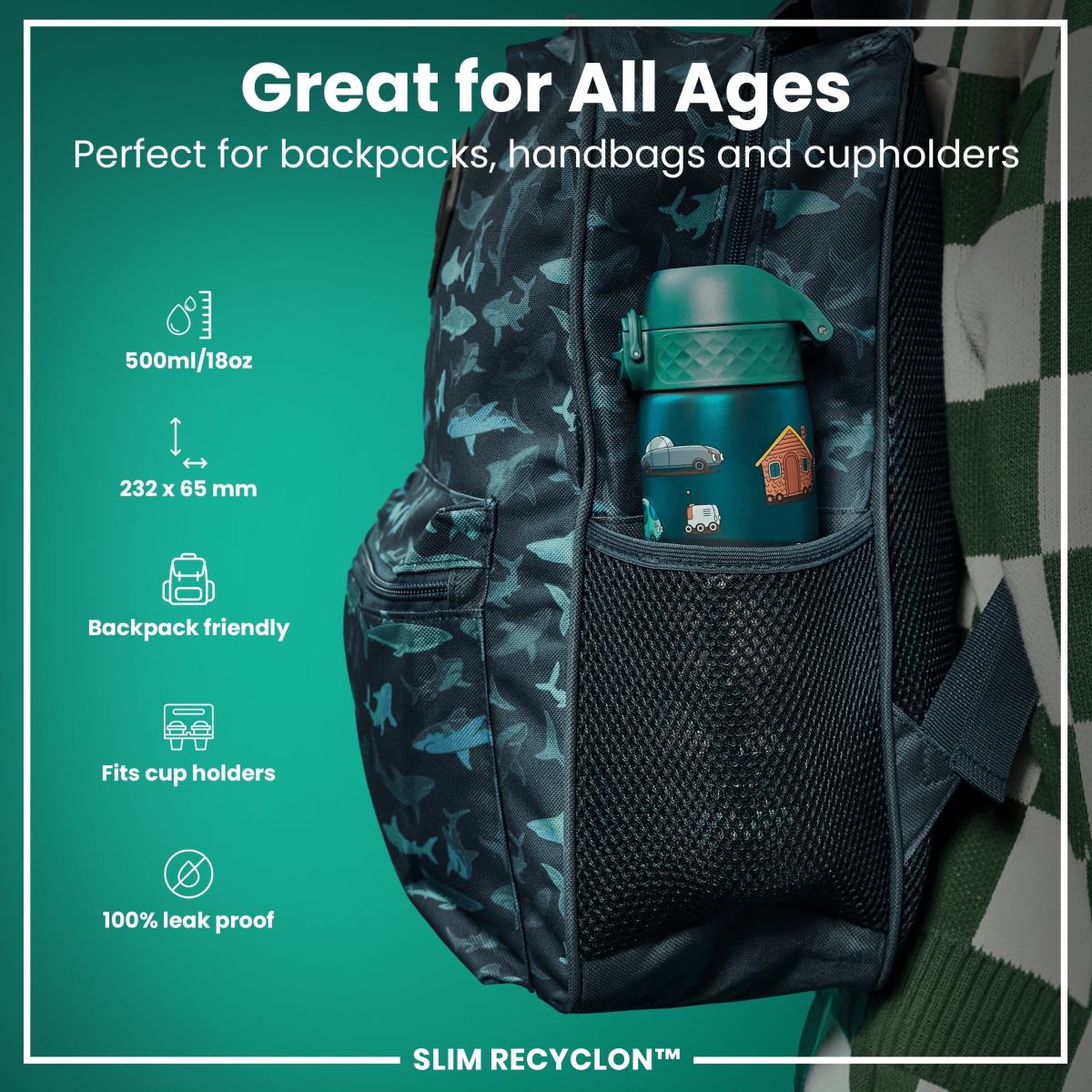 Leak Proof Slim Water Bottle, Recyclon, Automobile, 500ml (18oz)