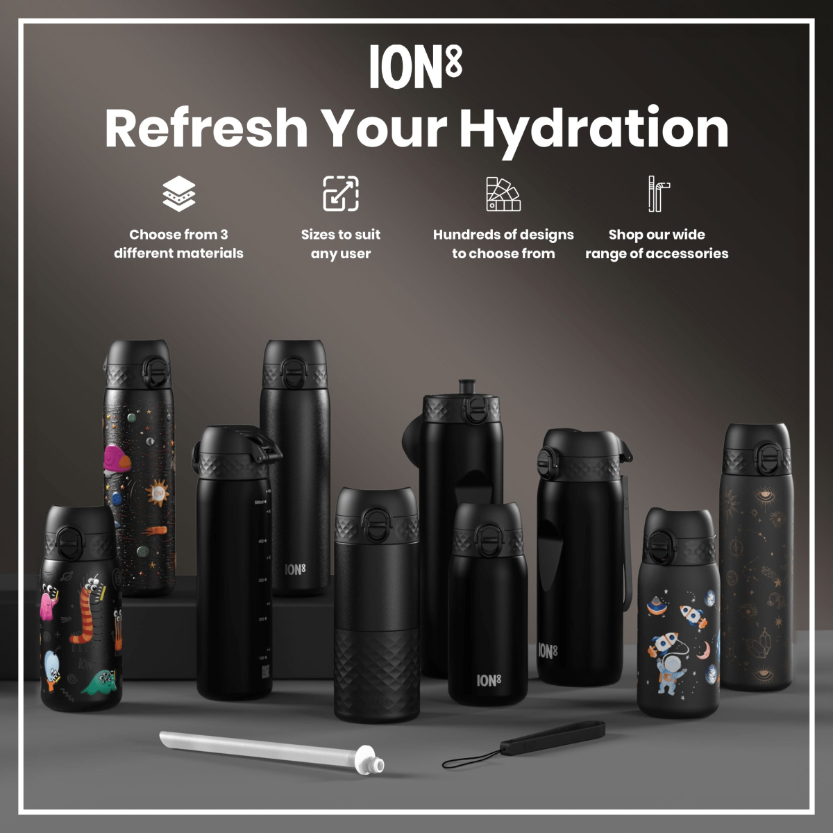 Leak Proof Small Water Bottle With Straw, Recyclon, Black, 350ml (12oz)