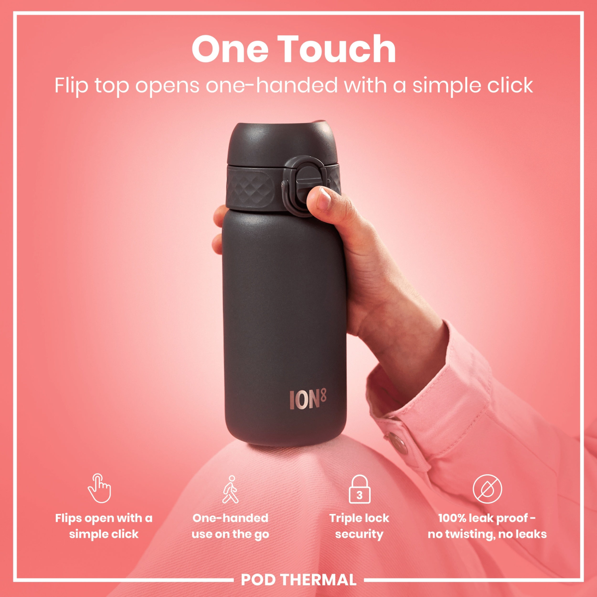 Made from vacuum insulated pro grade ThermoShield stainless steel. Stainless steel is extremely durable, lasts for years, and is carbon neutral and fully recyclable.This refillable and reusable drinks bottle is food safe, odour resistant, easy to hand wash, protects temperature for hours and keeps drinks fresh and full of flavour.