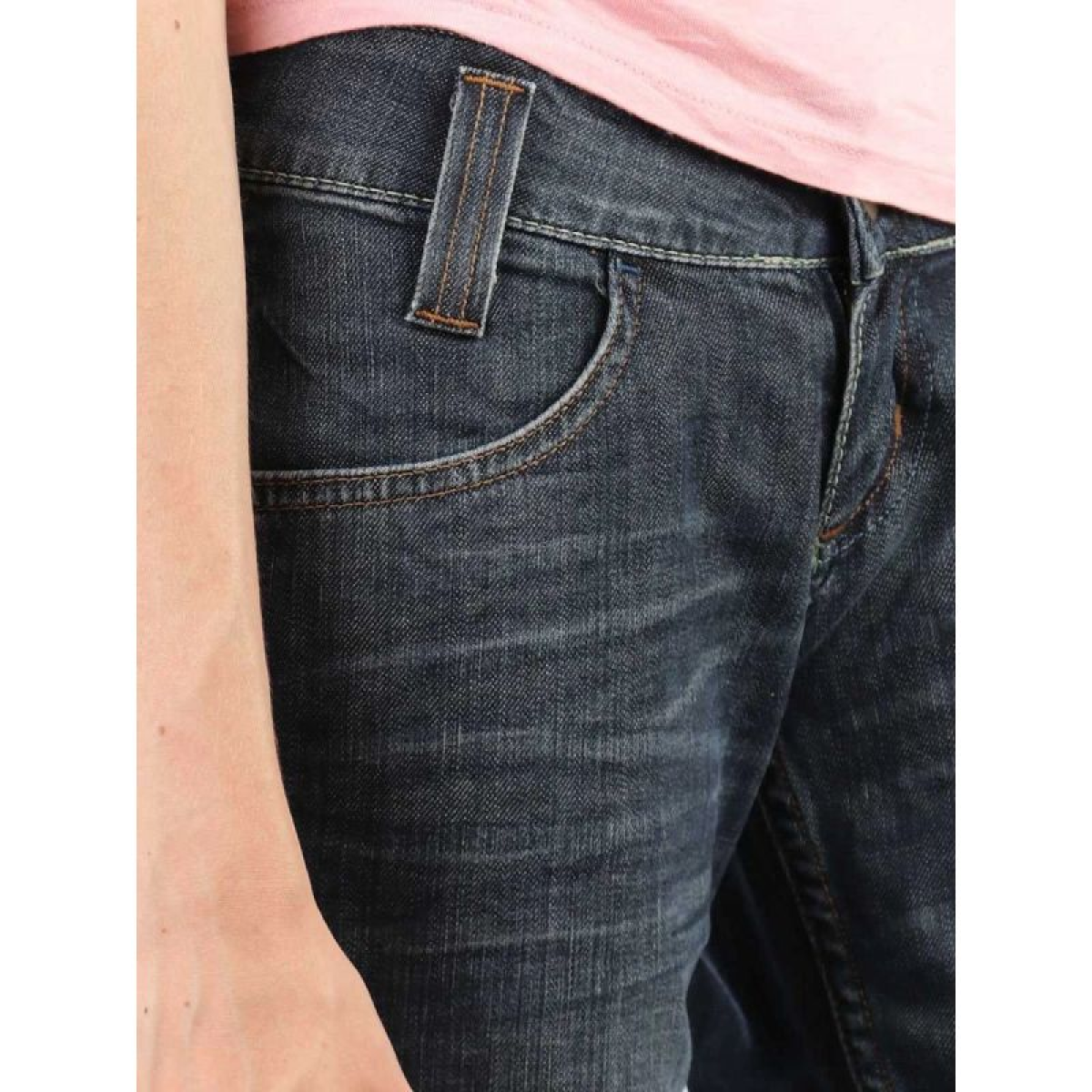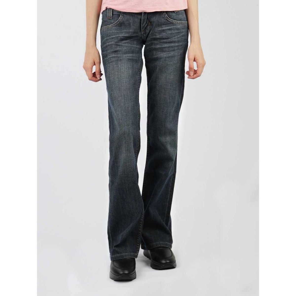 Women's low-rise flared jeans with a zip and button closure. Lee patch on the back.