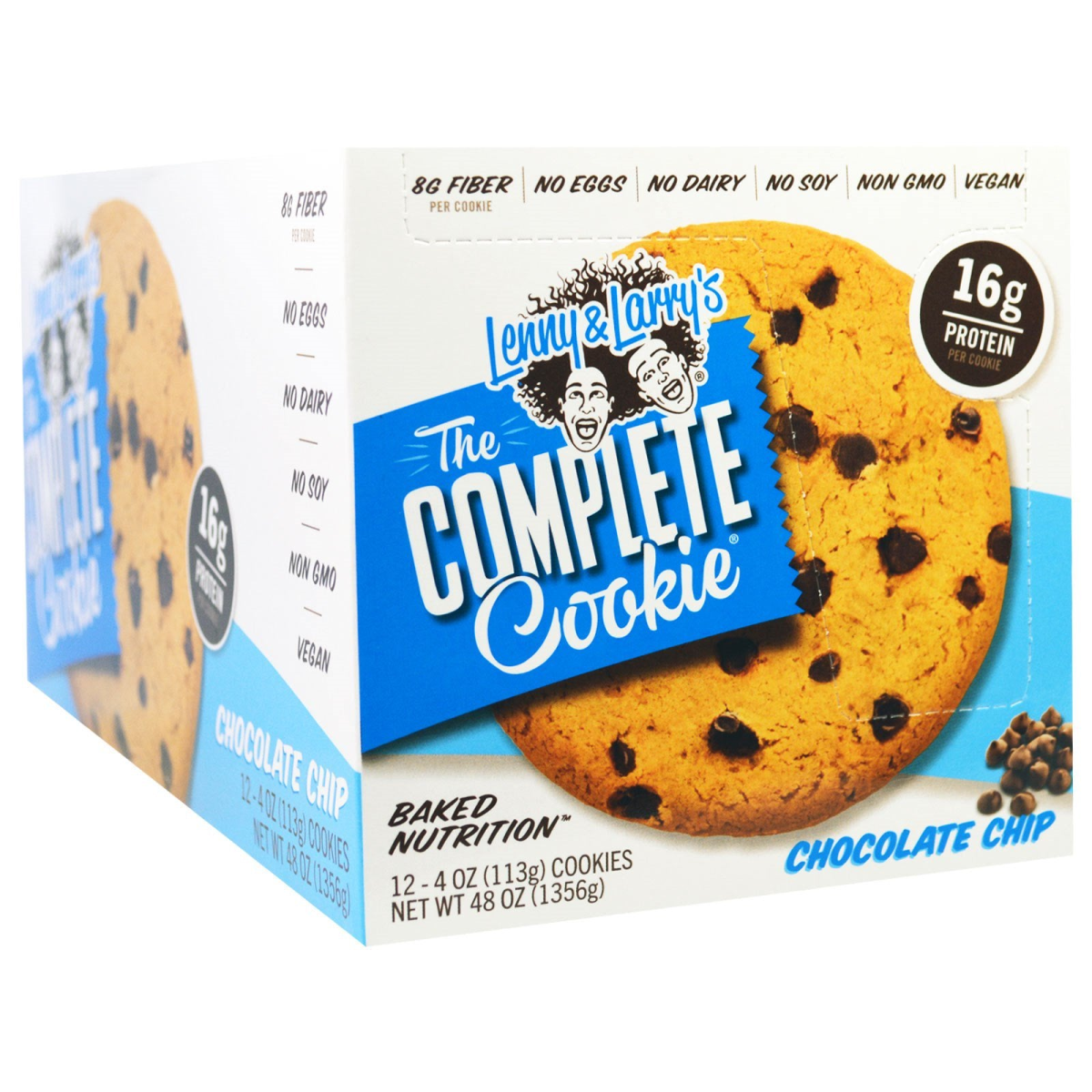 16 g Protein Per Cookie Baked Nutrition 8 g Fiber No Eggs No Dairy No Soy Non GMO Vegan Facts: Fresh Baked Vegan 16 g Protein Per Cookie No Dairy No Eggs No Soy Non-GMO Kosher No High Fructose Corn Syrup 8 g of Fiber No Cholesterol No Trans Fat No Artificial Sweeteners No Sugar Alcohols Sustainable Palm Oil