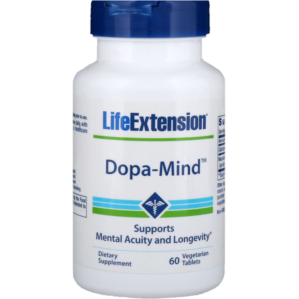 Supports Mental Acuity and Longevity Dietary Supplement Dopa-Mind is a standardized wild green oat extract for aging individuals who wish to maintain more youthful cognitive health and performance. With age, our brain’s levels of dopamine—which regulates mood and cognition—begin to diminish, leading to a corresponding decline in mental performance.3 This dopamine depletion is largely caused by rising levels of an enzyme called monoamine oxidase-B (MAO-B). Published studies show that by inhibiting MAO-B, this bioactive wild green oat extract promotes healthy dopamine levels. This MAO-B inhibiting mechanism has been shown to support mental acuity and longevity. In a double-blind, randomized, placebo-controlled trial in aging volunteers with below-average cognition, researchers demonstrated that 1,600 mg of the same wild green oat extract found in Dopa-Mind produced a 74% improvement on a standard test of mental acuity. In soon-to-be published research, 800 mg of the same extract supported mental processing time and speed. In other research, this extract exhibited support for cerebral vasodilator function, as well as endothelial function—both of which play roles in brain health. The wild green oat extract in Dopa-Mind has been shown to promote more youthful cognitive performance in those where it is showing signs of waning, help maintain cognitive function in those whose minds are still healthy, and may support longevity. The suggested dose is one tablet of Dopa-Mind daily for the first month. If desired results do not manifest, increase the dose to two tablets daily.