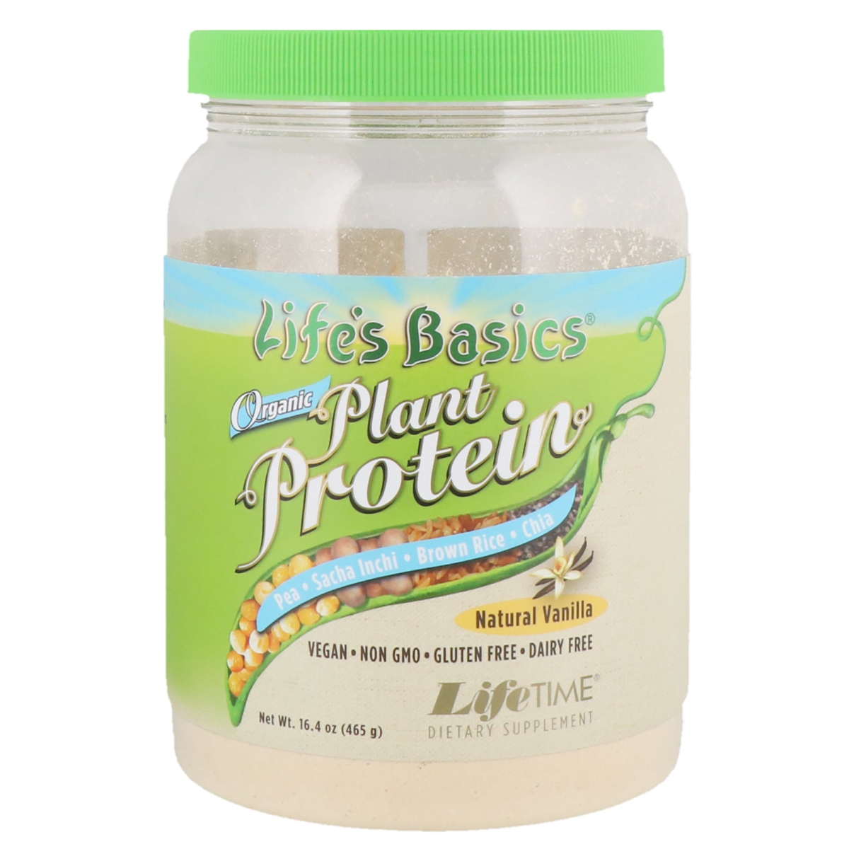 The Original Plant Protein Grown to Love Pea • Sacha Inchi • Brown Rice • Chia Vegan Non-GMO Gluten Free Dairy Free Dietary Supplement 20 g Well-Balanced Protein Natural Vanilla Flavor Slightly Sweet Soy Free Certified CCOF See The Goodness Inside. Life's Basics Plant Protein provides clean, quality-tested ingredients in a clear, recyclable and BPA Free jar. We developed a special UV-Guard to protect the contents and keep flavors fresh. Plant Protein For Your Lifestyle. Our combination of proteins from Yellow Pea, Sacha Inchi, Brown Rice and Chia Seeds provides 20 grams protein per serving. This wholesome source of highly digestible plant proteins offers a substantial amino acid profile and Omega 3-6-9 fatty acids. Delightful Vanilla Flavor. Since 1999, Life's Basics has been a leader in nutrition and is focused on providing delicious, smooth and tasty plant-based proteins. Mix this slightly sweet vanilla powder with water or add to a healthy smoothie. Enjoy the smoothness and flavor.