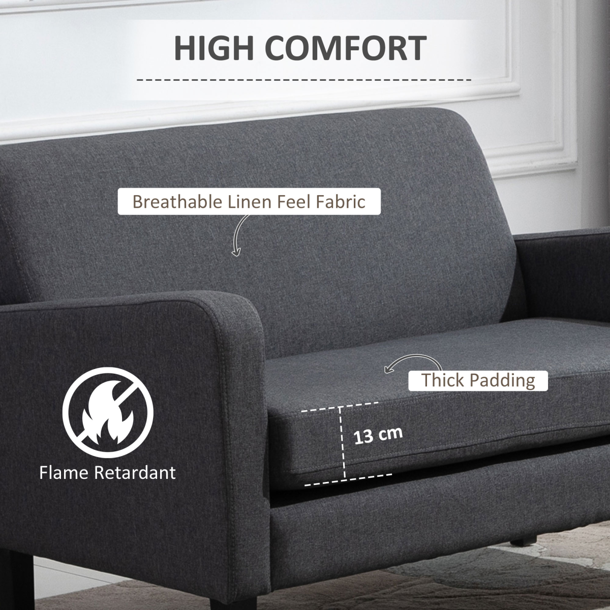 Two-seater: Loveseat size allows you to relax with a friend, also gives a person lots of room to stretch out.Simple design: A classic shape, updated with smooth curved arms and a slanted back, the grey sofa is perfect for bedrooms, living rooms and offices.Wood frame, pocket spring filled: Comfortable and relaxing, cushion keeps in shape. A strong and supportive core frame, with thick legs to keep the loveseat balanced.Linen-look upholstery: Fabric on the two seater sofa is smooth and gentle on the skin. Dimensions: 74H x 122W x 72Dcm.Dimensions: 74H x 122W x 72Dcm. Maximum load 150kg. Assembly required.