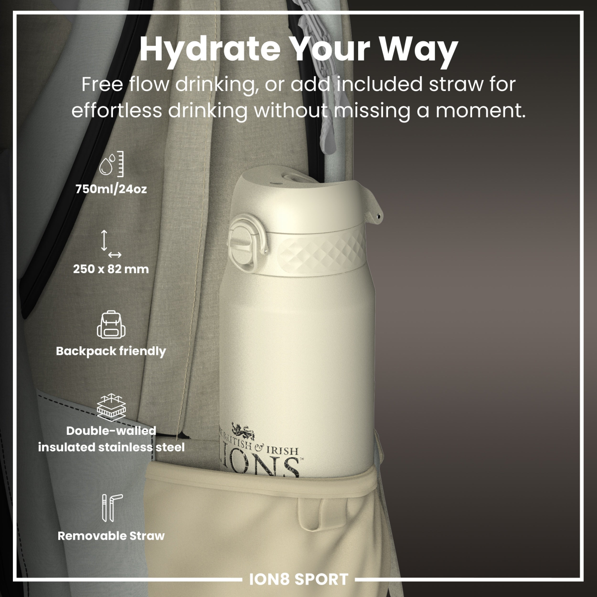 Raise your game with the Official British & Irish Lions Thermal Insulated Bottle by ION8. Designed to meet the uncompromising standards of rugby’s greatest team, this 750ml double-wall stainless steel bottle combines premium performance with unmistakable Lions pride.