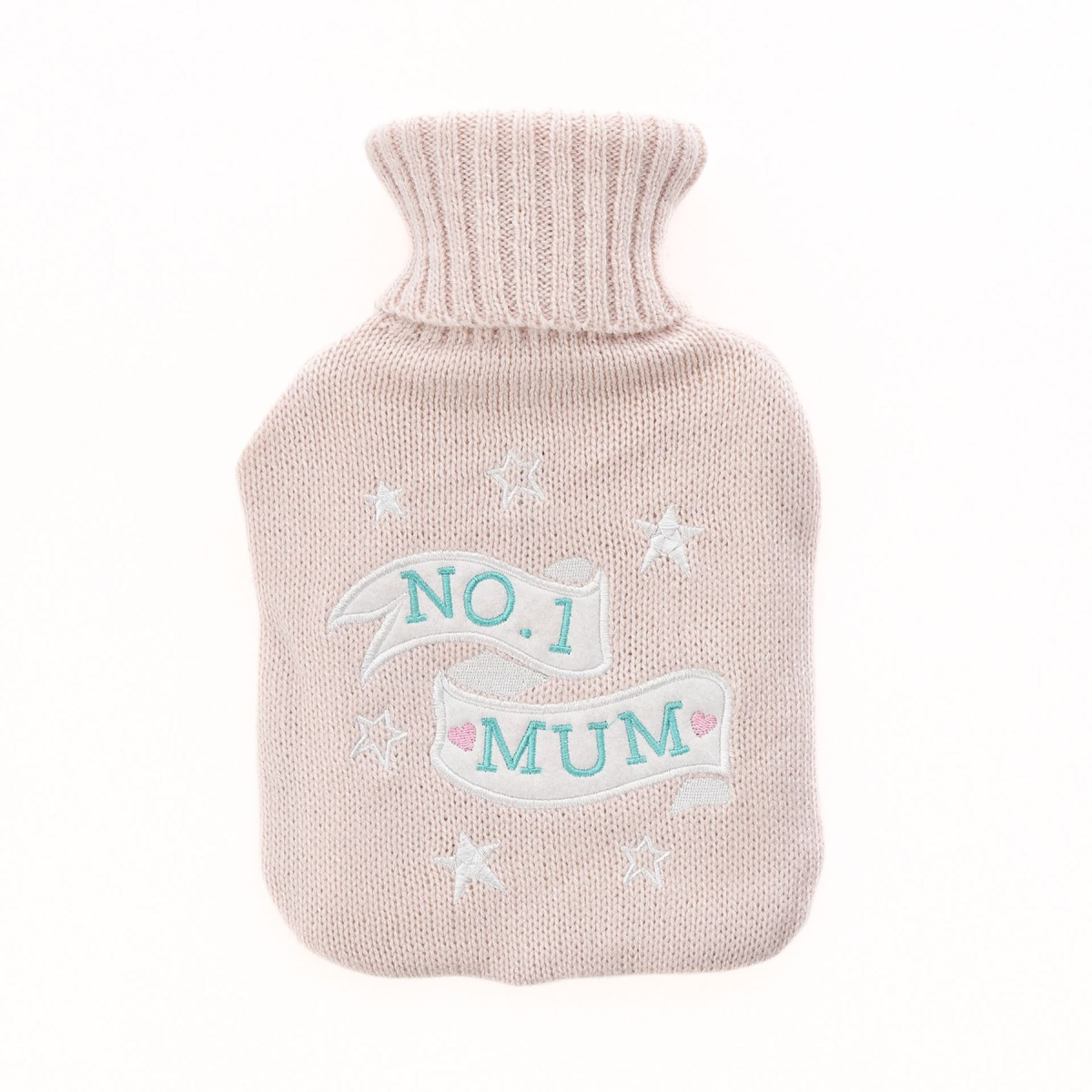 Warm your mum's heart with this sweet, pink and white hot water bottle. The perfect gift for a special occasion or just as a reminder of how special she is. Details: - 27 x 17cm - Pink fabric - Rubber bottle - White stars and 'No. 1 Mum' sentiment