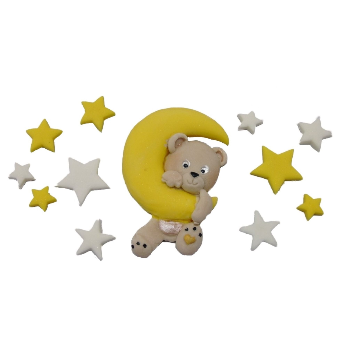 Edible moon bear cake topper is suitable for baby-themed celebrations .This edible topper is cute makes it ideal for various celebrations.
