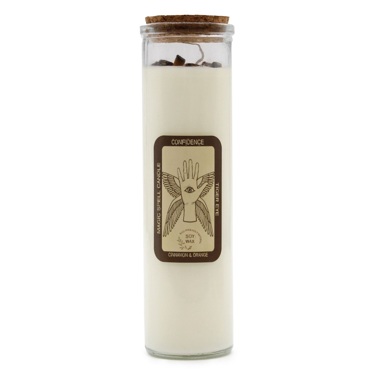 This candle is to ignite self-assurance, empower your spirit, and radiate an unwavering sense of confidence. To boost your self-esteem, enhance your inner strength, and inspire a bold, fearless mindset. Embedded within the candle, you will discover a genuine Tiger eye, known as the stone of courage and protection, promoting inner strength, resilience, and self-confidence. The warm and spicy scent of cinnamon, known for its invigorating and confidence-boosting properties, will fill the air, creating an atmosphere that ignites courage, determination, and self-assuredness.