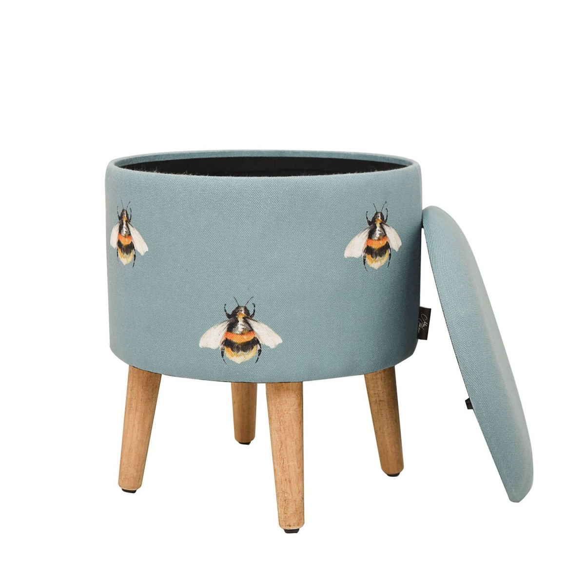 This storage footstool would make a great addition to any living space this spring. Featuring a beautiful water-colour style repeated bee pattern, add something special to the home. Details: Storage footstool Watercolour bee design Blue Wooden legs
