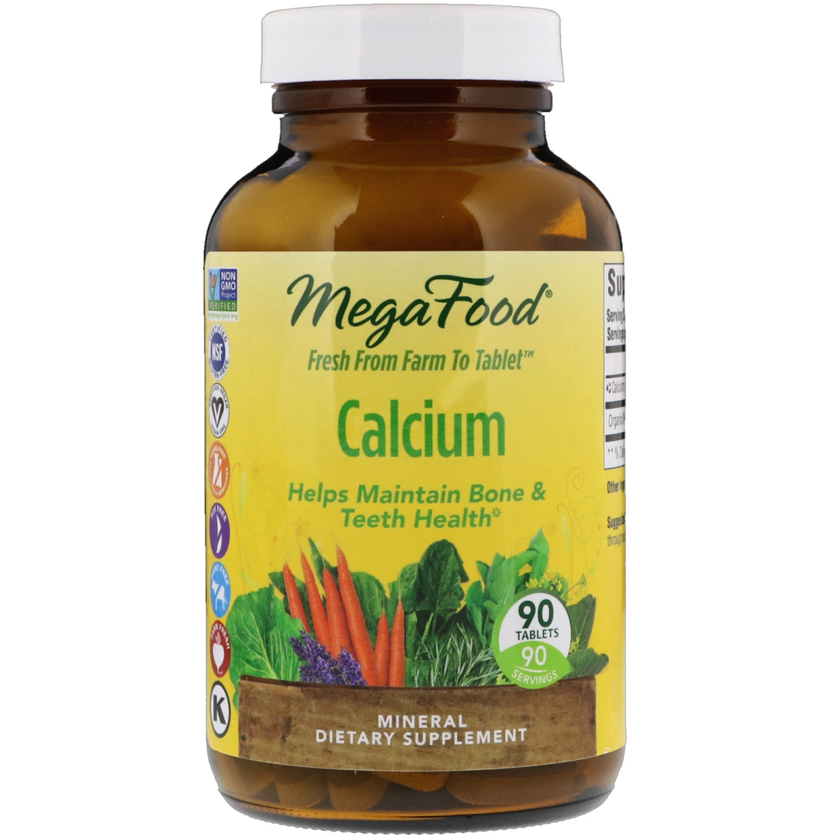 Non-GMO Project Verified NSF - Certified Gluten-Free Certified Vegan Tested Free of Pesticides & Herbicides Soy Free Dairy Free Farm Fresh Kosher Fresh From Farm to Tablet Helps Maintain Bone & Teeth Health 90 Servings Mineral Dietary Supplement