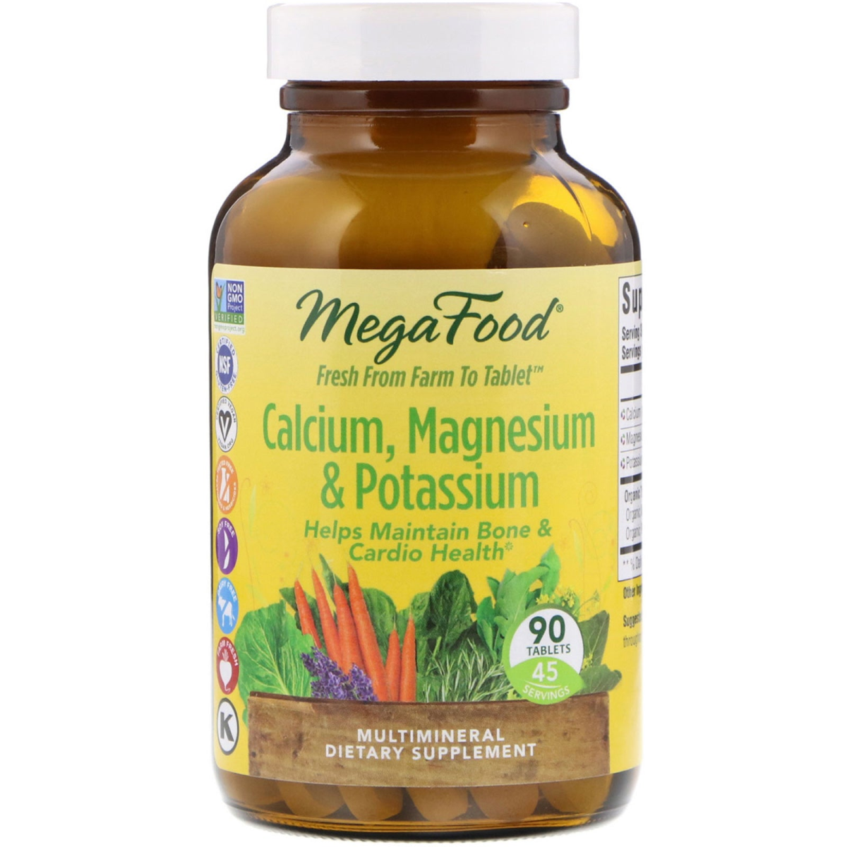 Fresh & Local Food Made with Love Since 1973 Slo-Food Process Authentic Nourishment That Supplement Show Non-GMO Project Verified NSF - Certified Gluten-Free Certified Vegan Tested Free of Pesticides & Herbicides Soy Free Dairy Free Farm Fresh Kosher Fresh From Farm to Tablet Helps Maintain Bone & Cardio Health 45 Servings Multimineral Dietary Supplement