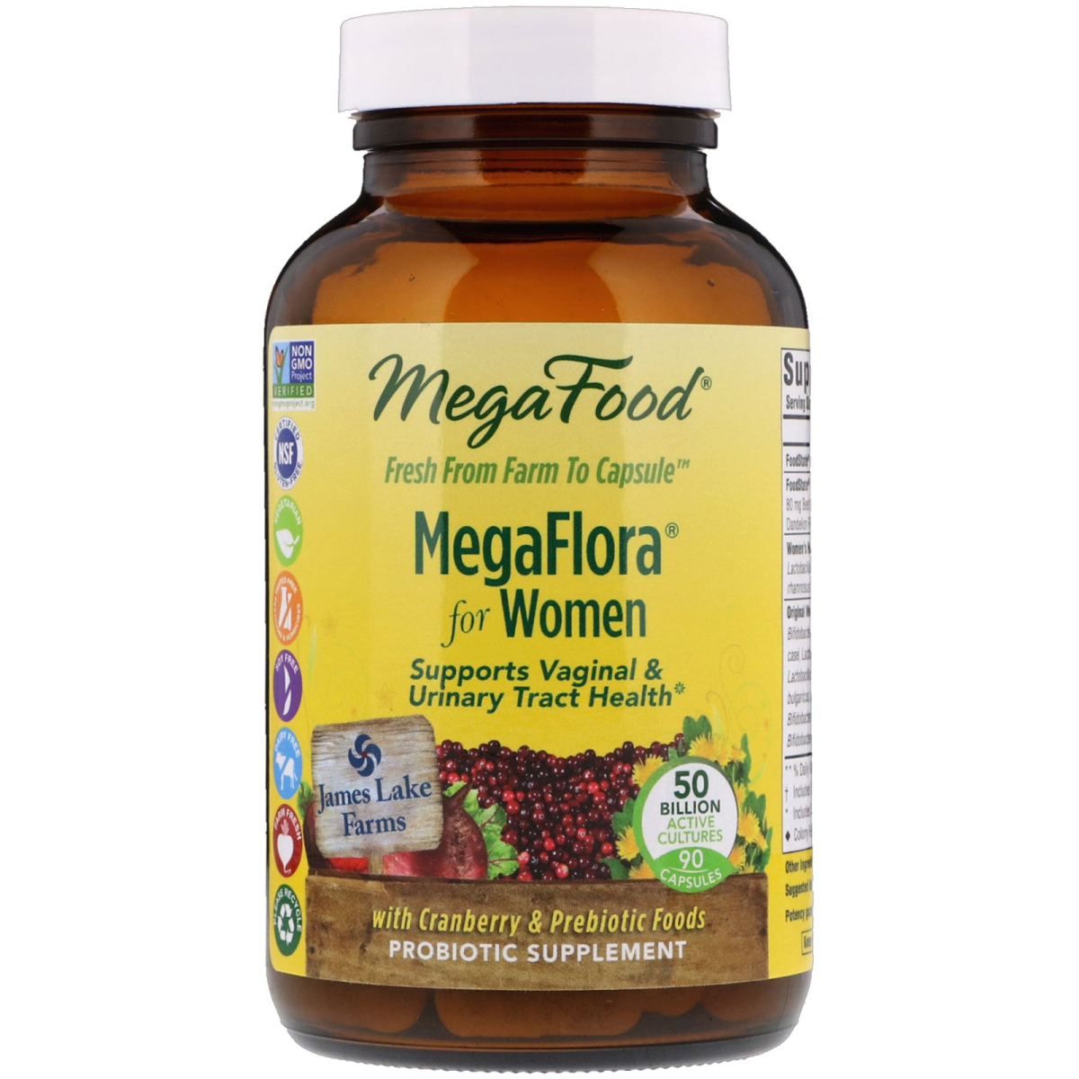 Fresh From Farm To Capsule Supports Vaginal & Urinary Tract Health James Lake Farms 50 Billion Active Cultures With Cranberry & Prebiotic Foods Probiotic Supplement Non-GMO Project Verified NSF - Certified Gluten Free Vegetarian Tested Free of Pesticides & Herbicides Soy Free Dairy Free Farm Fresh James Lake Farm is a family-owned certified Organic Cranberry farm located in Wisconsin. The Stauners take pride in growing and harvesting deeply pigmented Cranberries that are rich in protective proanthocyanidins, compounds which have been shown to specifically support urinary tract health. Women are particularly susceptible to occasional vaginal & urinary discomfort when the microbiome is out of balance. MegaFood created this probiotic formula exclusively for women, with FoodState Cranberry, a super fruit, and a high count of Lactobacillus rhamnosus (HN001) and Lactobacillus plantarum (LP115), probiotics known to promote vaginal & urinary tract health. Our signature MegaFlora blend of 14 probiotic strains offers digestive and immune system support. To enhance the effectiveness and colonization of the probiotics, we also added prebiotic foods, Beet, Burdock and Dandelion Root, which together nourish your existing microbiome and feminine health.