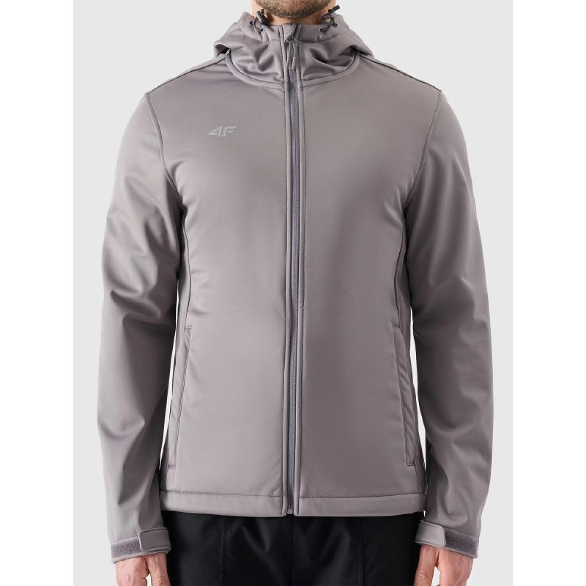 The 4F men's softshell jacket is equipped with a NeoDry 5000/3000 membrane, meaning it's resistant to light precipitation and ensures optimal moisture management during everyday activities. Additional support at every stage of use: hydrophobic impregnation, windproof material. The hydrophobic impregnation coating covers the outer layer of the material, protecting it from water absorption. This coating causes moisture to condense on the surface of the fabric or knit, then rolls off freely. The special construction and properties of the softshell (windstopper) material provide effective protection against wind pressure. Practical features: integrated 2D hood, adjustable cuffs. This men's hooded softshell jacket features an integrated hood with volume adjustment. A low stand-up collar further protects the neck from the cold. The sleeves are finished with Velcro-adjustable cuffs. Two zippered pockets are located on the sides.