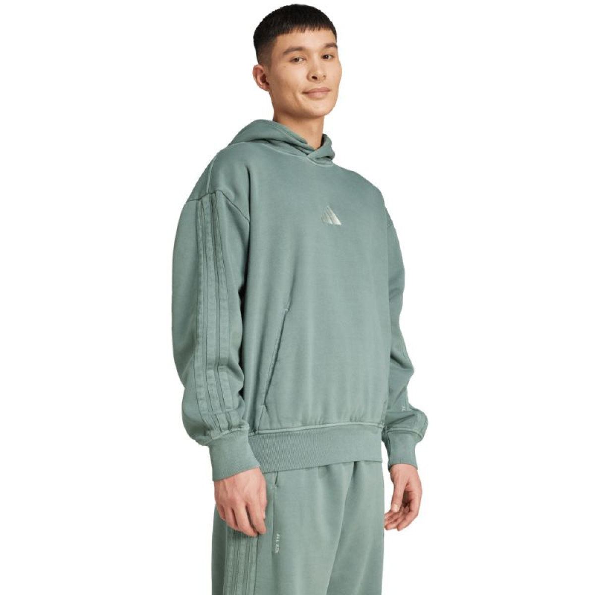 Men's adidas A SZN W FL HD Green Sweatshirt JL6538 This men's adidas sweatshirt is perfect for everyday wear. Soft, cotton fabric with added polyester fibers. Fleece lining softly hugs the skin for warmth. Loose fit. Non-adjustable hood. Elastic cuffs and hem. Front pocket. Material: 70% cotton, 30% polyester