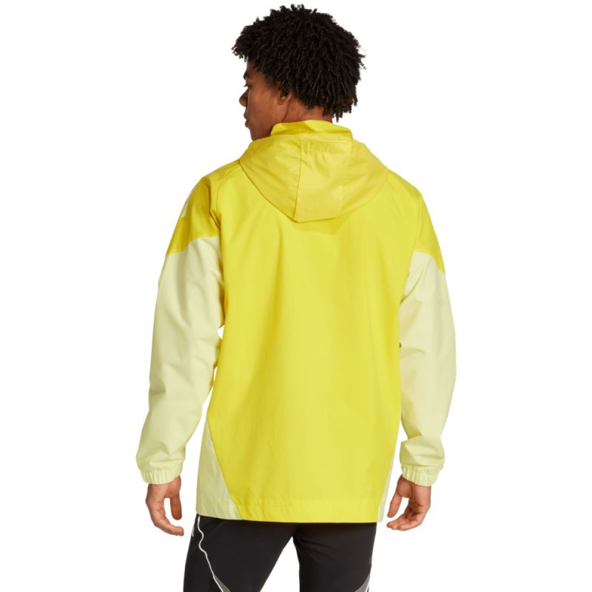adidas Tiro 25 Competition All-Weather Jacket, Yellow JI8958. This adidas Tiro men's jacket is perfect for training. A full-length zipper allows for quick dressing. A chin guard protects the chin. The hood is adjustable with toggles and can be tucked into the collar. Specifications: Outer fabric: 100% recycled polyester. Inner fabric: 100% thermoplastic polyurethane. Standard fit. Front zip pockets. Mesh lining. Concealed hood. Elastic cuffs.