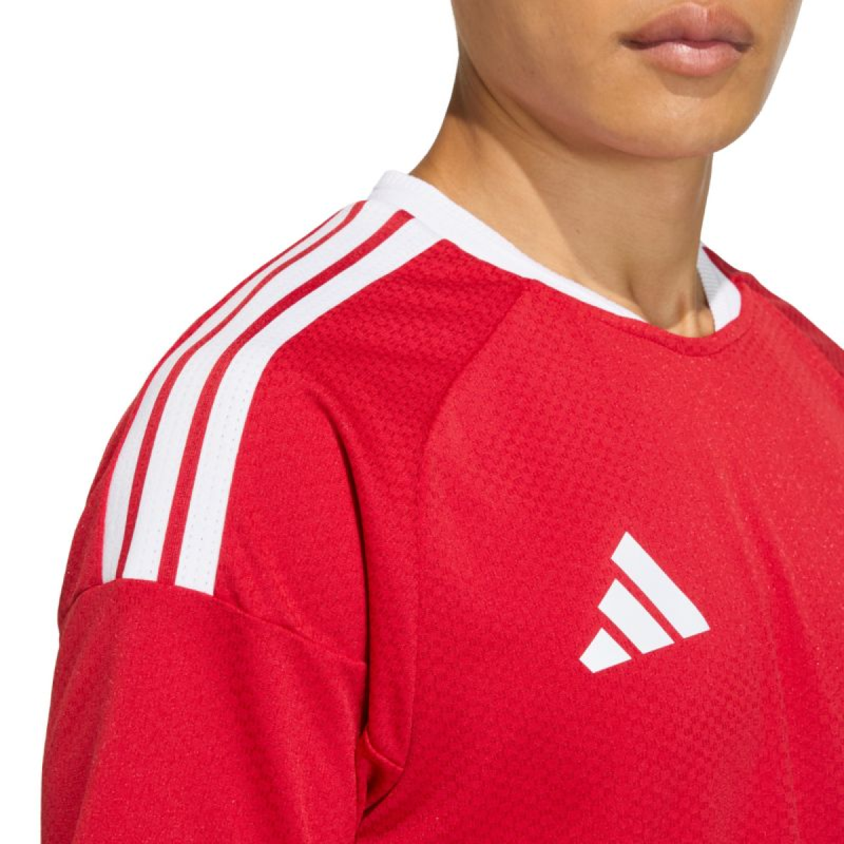 The adidas Tiro 26 Competition Match Jersey, red and white, KA6173, is perfect for football matches. This adidas men's jersey features a fitted cut, a crew neck with a subtle collar, and mesh panels. Climacool technology wicks away sweat and disperses it. Recycled fibers are used throughout the fabric. Heat-transfer logos are applied. Shoulder straps. Material: 100% recycled polyester.