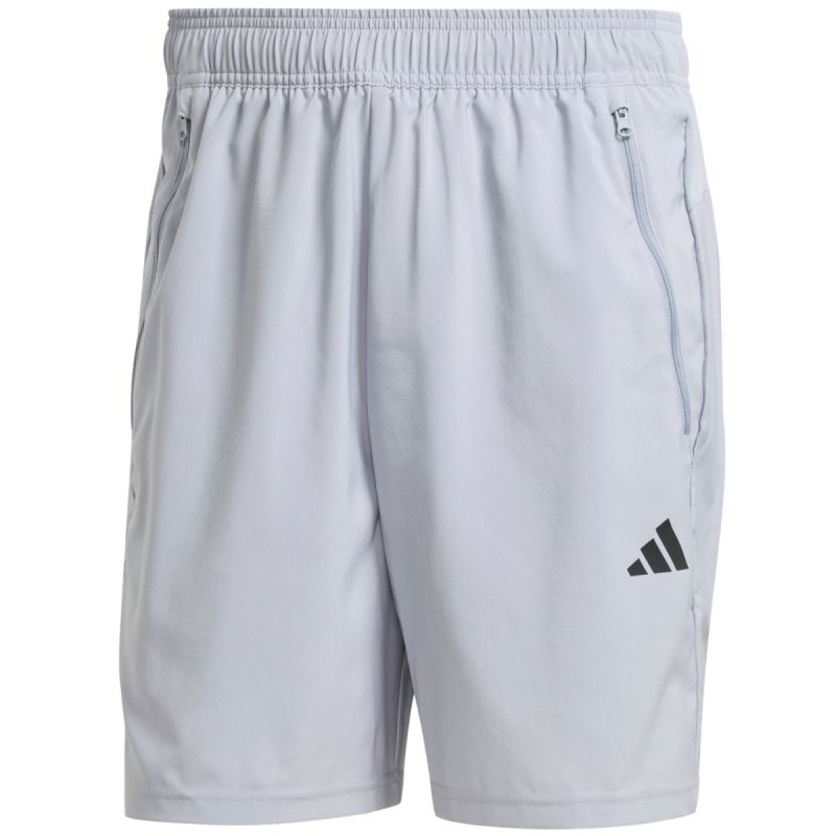 adidas Train Essentials Woven Training Shorts, Gray JX2716. These adidas men's shorts are perfect for training. Aeroready technology efficiently wicks moisture away, leaving you feeling fresh and focused. Quick-drying fabric. Regular fit. Elastic waistband with an internal drawstring. Zippered side pockets. Small adidas logo. Recycled fabric helps protect the environment. Material: 100% recycled polyester