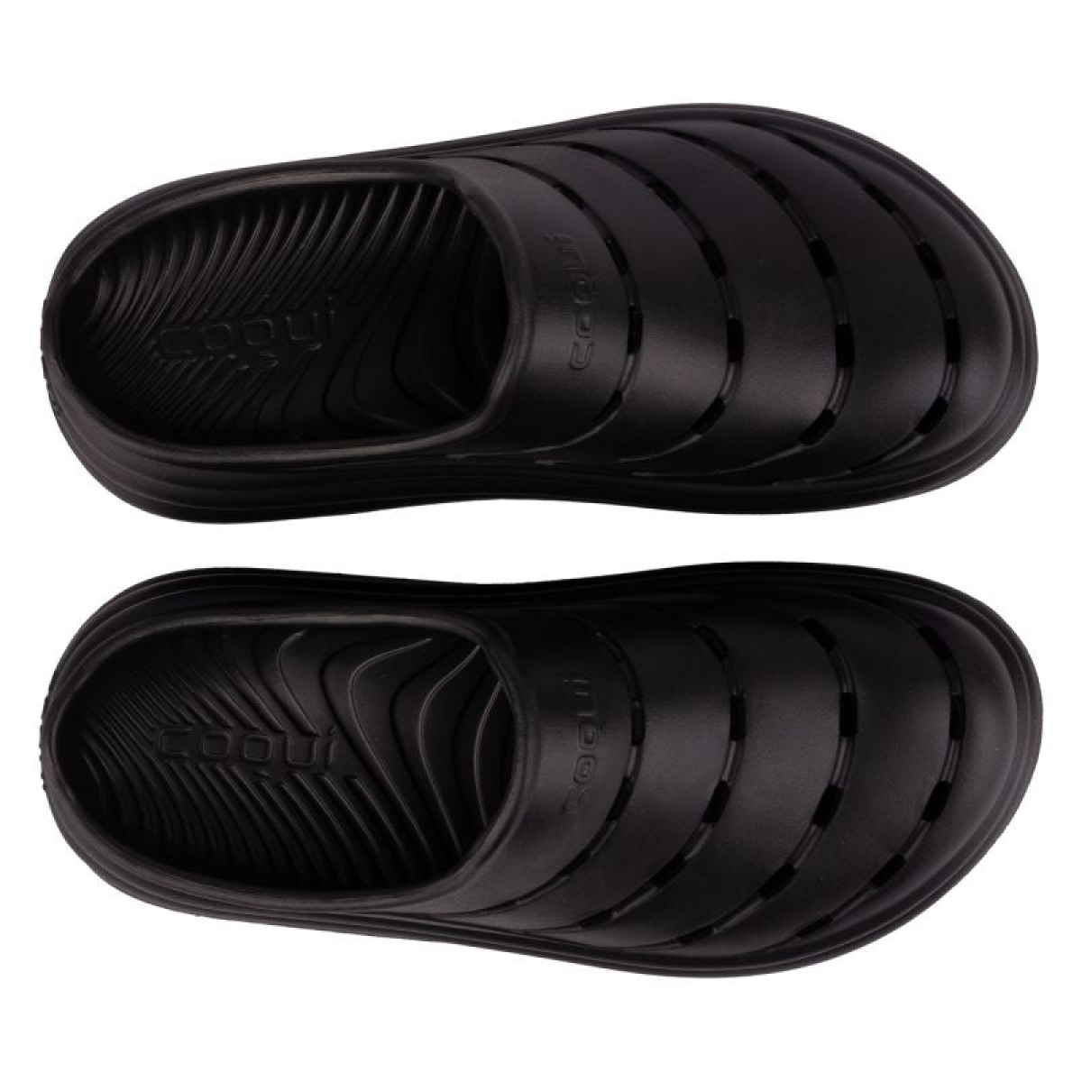 CoquiAir material (the highest class of EVA materials) Antibacterial surface Anti-slip and non-marking sole Slightly raised heel Ventilation holes on the instep Possibility of personalization with Amuletz pins