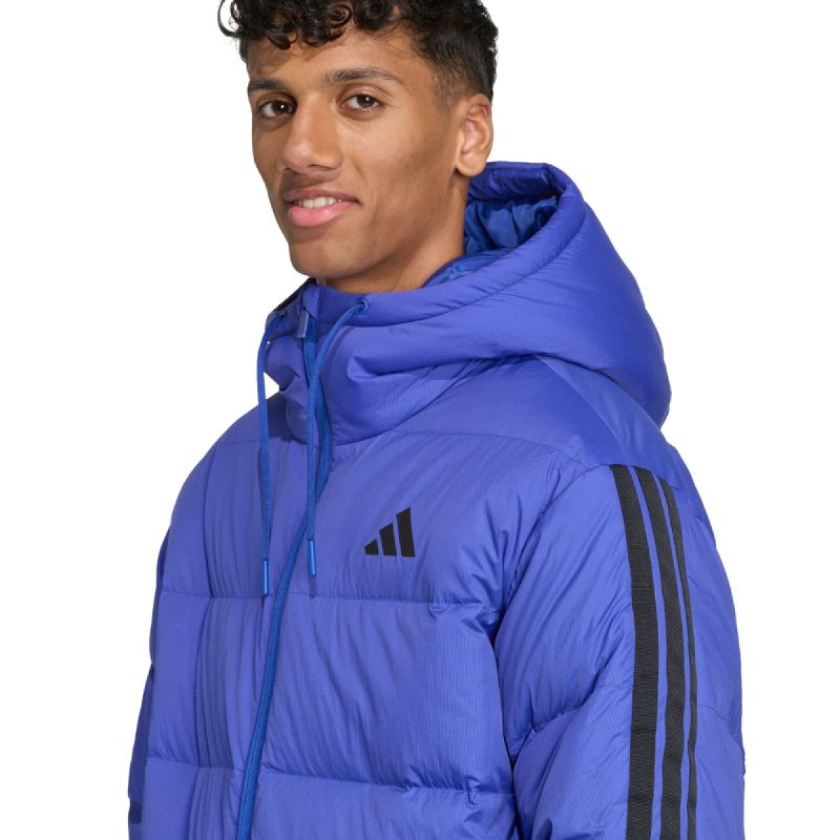 Men's adidas Ess 3S PD HD J Cobalt Jacket JW9099 This adidas men's jacket provides a high level of insulation against the cold. Filled with natural down and feathers. The material with a DWR coating reduces moisture absorption. Loose fit. Full-length zipper. Side snap pockets. Fixed hood with a drawstring adjustment. Raised collar. Elastic cuffs and hem. Climawarm technology. Technical data: Main material: 100% recycled polyamide. Lining: 100% recycled polyester. Filling: 80% duck down, 20% feathers, fill power 600.