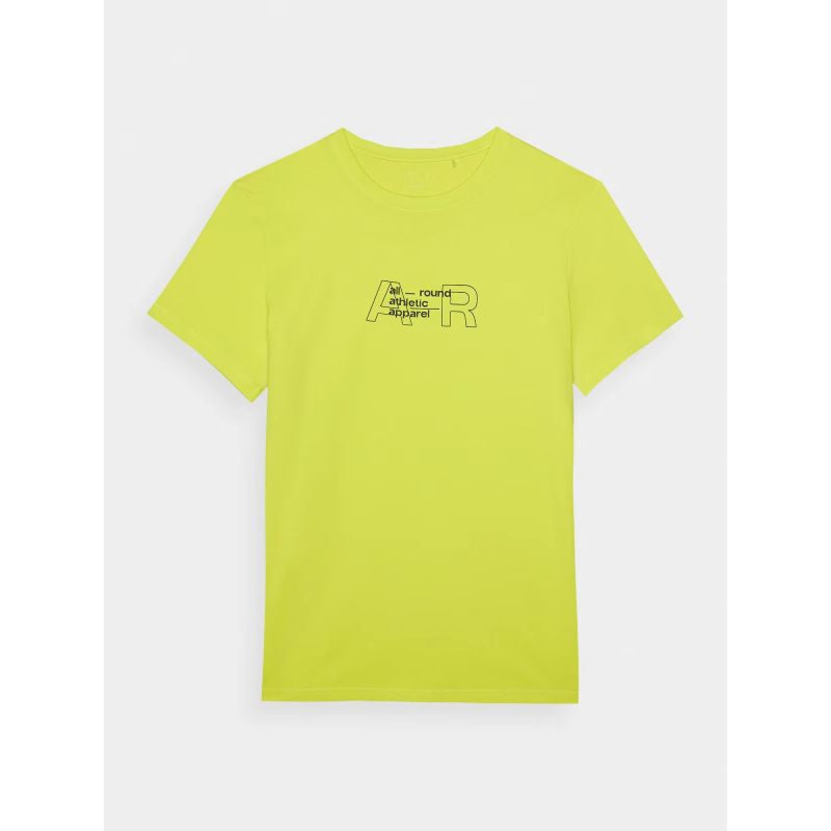 This men's printed T-shirt is perfect for both casual and everyday athletic wear. It features a regular fit that comfortably fits the body and a standard length that falls to the hips. The single jersey weave with a smooth, one-sided surface makes the T-shirt flexible and comfortable to wear. This men's short-sleeved T-shirt, with its 180 gsm weight, is soft to the touch and drapes well. It's non-sheer and provides durability and comfort for year-round wear. The 4F men's T-shirt is made of 100% cotton , making it soft, durable, and pleasant to the touch. The crew neckline is finished with a light ribbed trim. The front features a visible "All-Round Athletic Apparel" print.