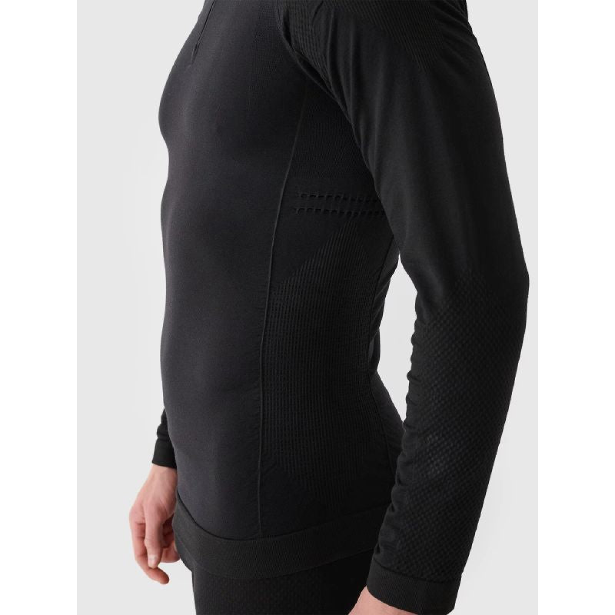 This thermal underwear is made of 39% soft, pleasant-to-touch Merino wool, which is breathable and effectively wicks moisture away from the skin, ensuring comfort even in demanding conditions. Thanks to the addition of polypropylene (29%), the material effectively wicks moisture away and is durable. This men's thermal shirt, made of stretchy , technical knit fabric with 4FSkin technology, fits perfectly to the body, ensuring comfort and maximum freedom of movement. The neckline features a stand-up collar with a zipper closure and a zipper lock.