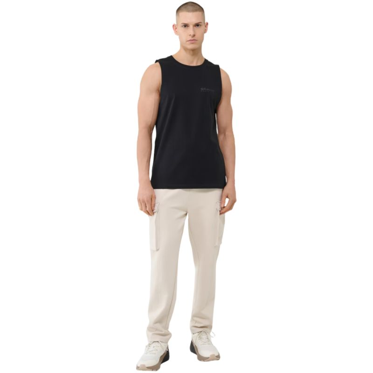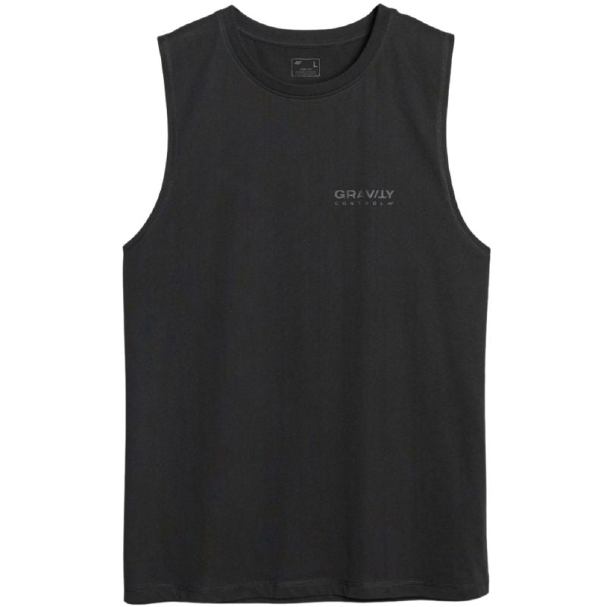4F M128 Men's T-Shirt, Deep Black 4FWSS25TSLEM128 20S This sleeveless 4F men's T-shirt is perfect for everyday wear and sports. Oversized, loose fit, hip-length. Weight: 180 gsm. Small print on the chest. Wide armholes. Material: 100% cotton