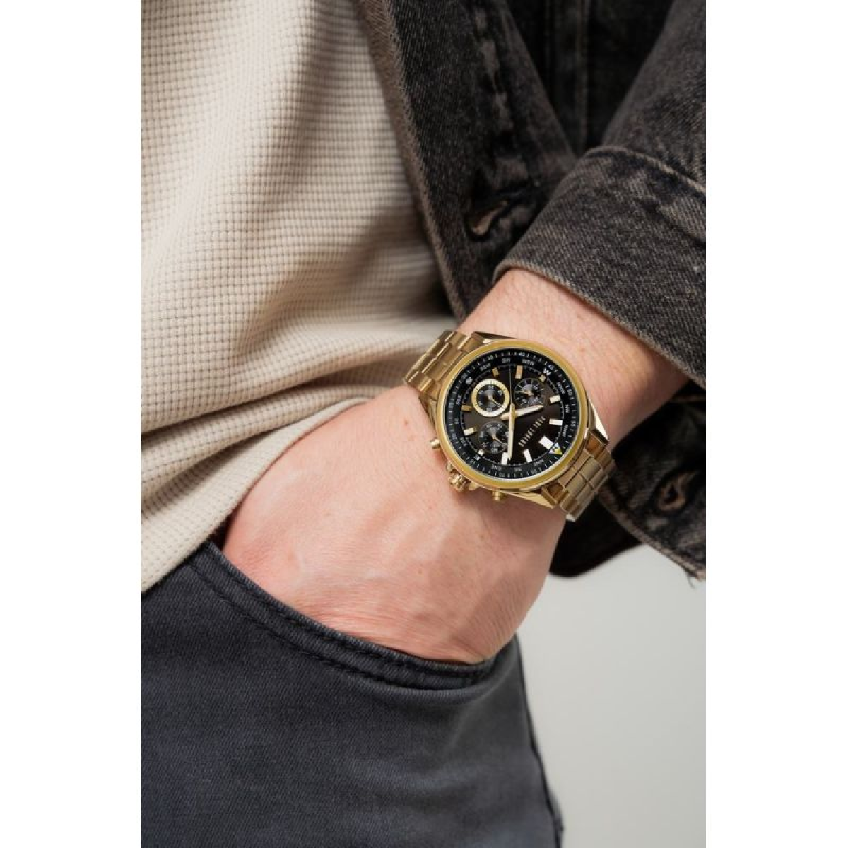 Crafted from the highest quality stainless steel, it combines unwavering durability with a luxurious finish that impresses from the very first glance. Its strong, robust construction ensures reliability and ensures the watch will fit perfectly, no matter how demanding your day may be. A precisely crafted clasp, embossed with the logo, complements this strong, masculine character, adding a touch of elegance and prestige. A multi-step clasp mechanism prevents accidental opening.