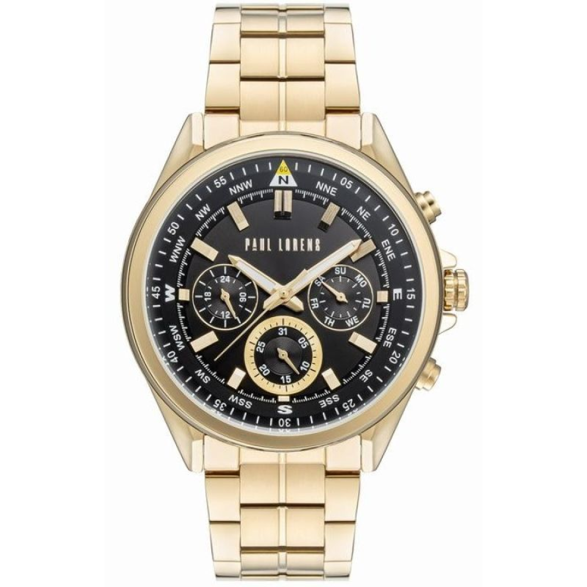 The watch features precise 24-hour time , day of the week (Mon, Tue, Wed, etc.) , and day of the month (ranging from 1 to 31) – allowing you to organize your day perfectly. The outer ring around the dial features cardinal directions: N, NE, E, SE, S, SW, W, NW , and their intermediate values (e.g., NNW, ENE). Although it is not a functional compass, it can be used as a navigational aid. A scale numbered from 05 to 60 , located next to the hour markers, allows for precise reading of minutes and seconds (for use with the appropriate hand).