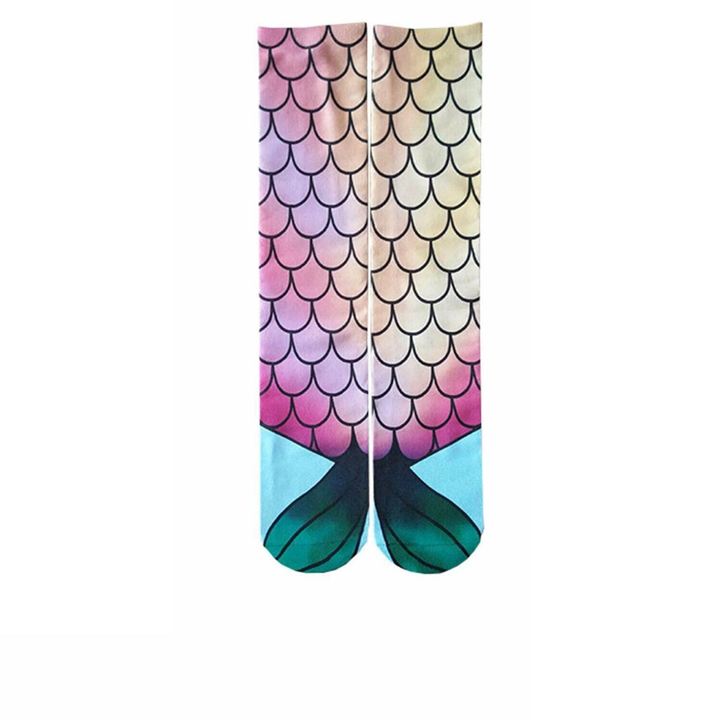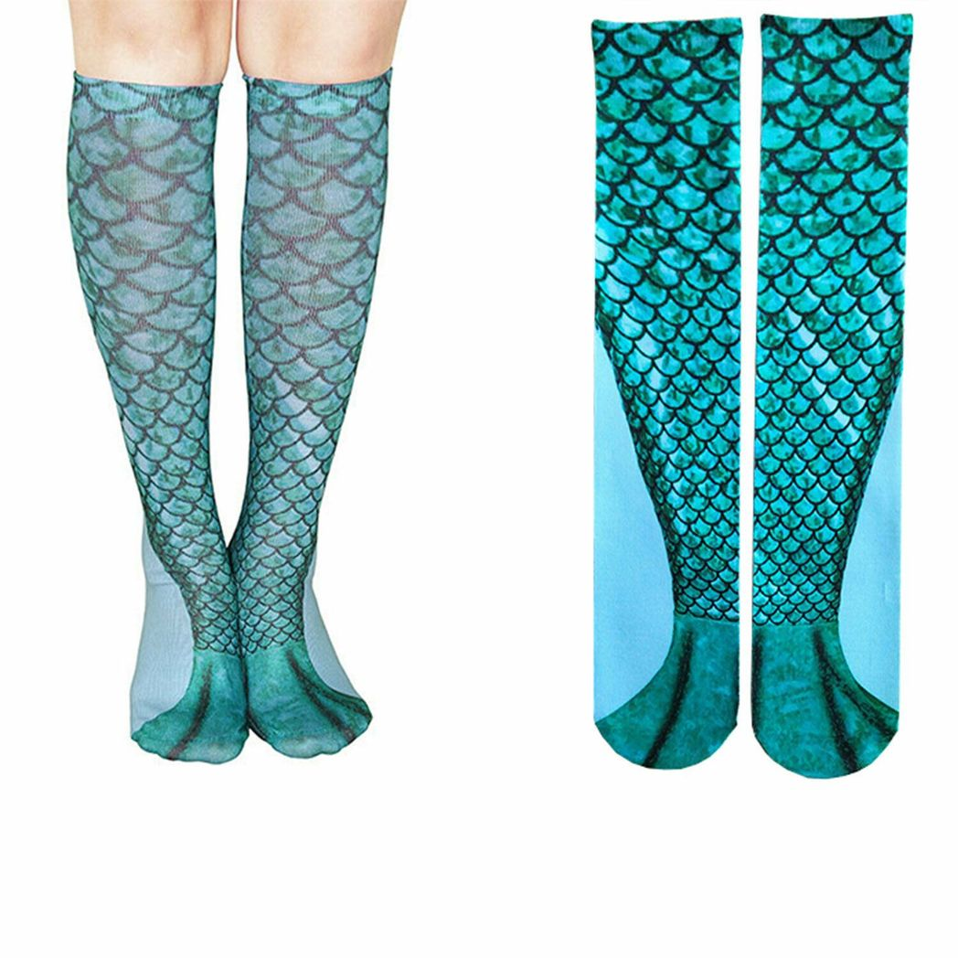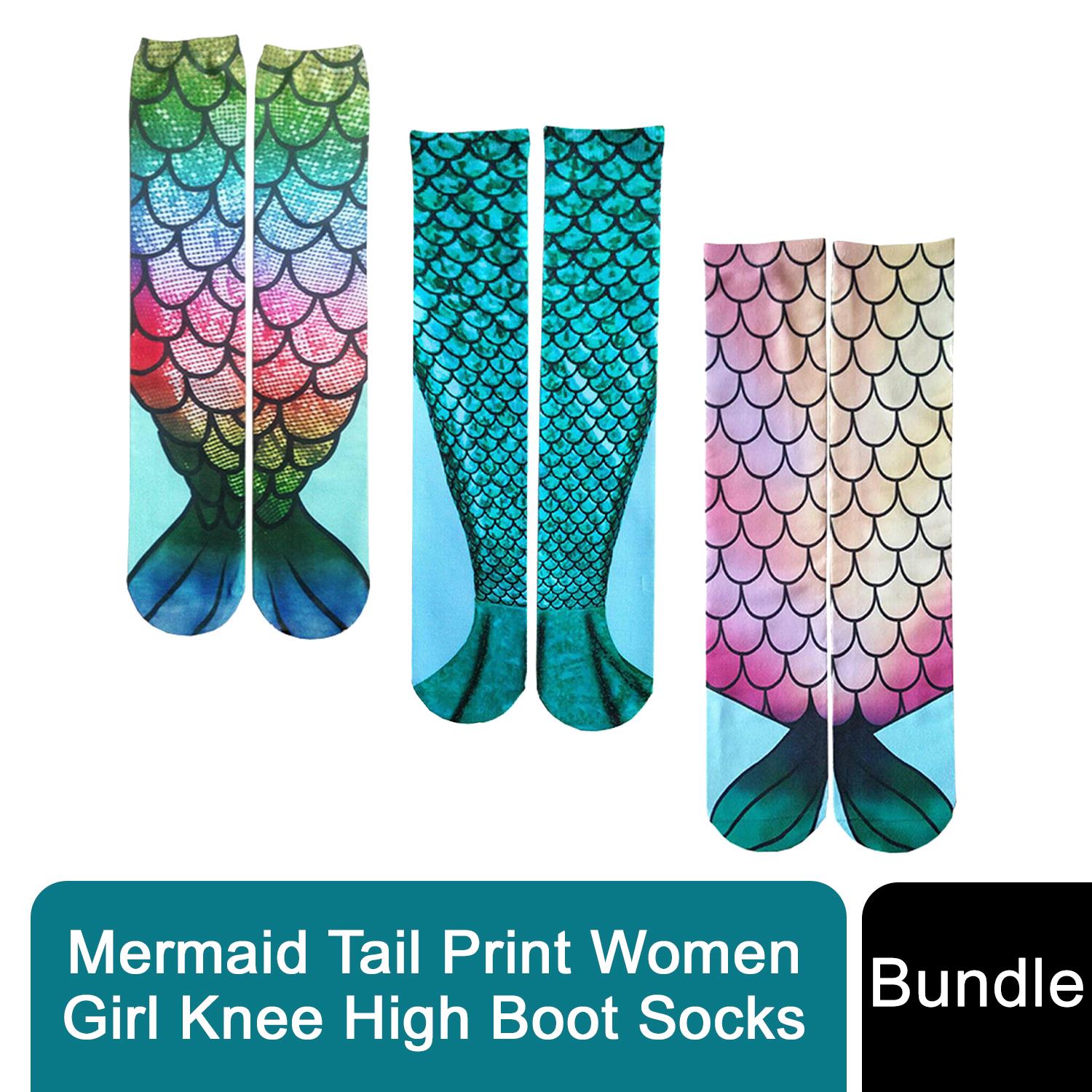 Mermaid Tail Print Women Girl Knee High Boot Socks