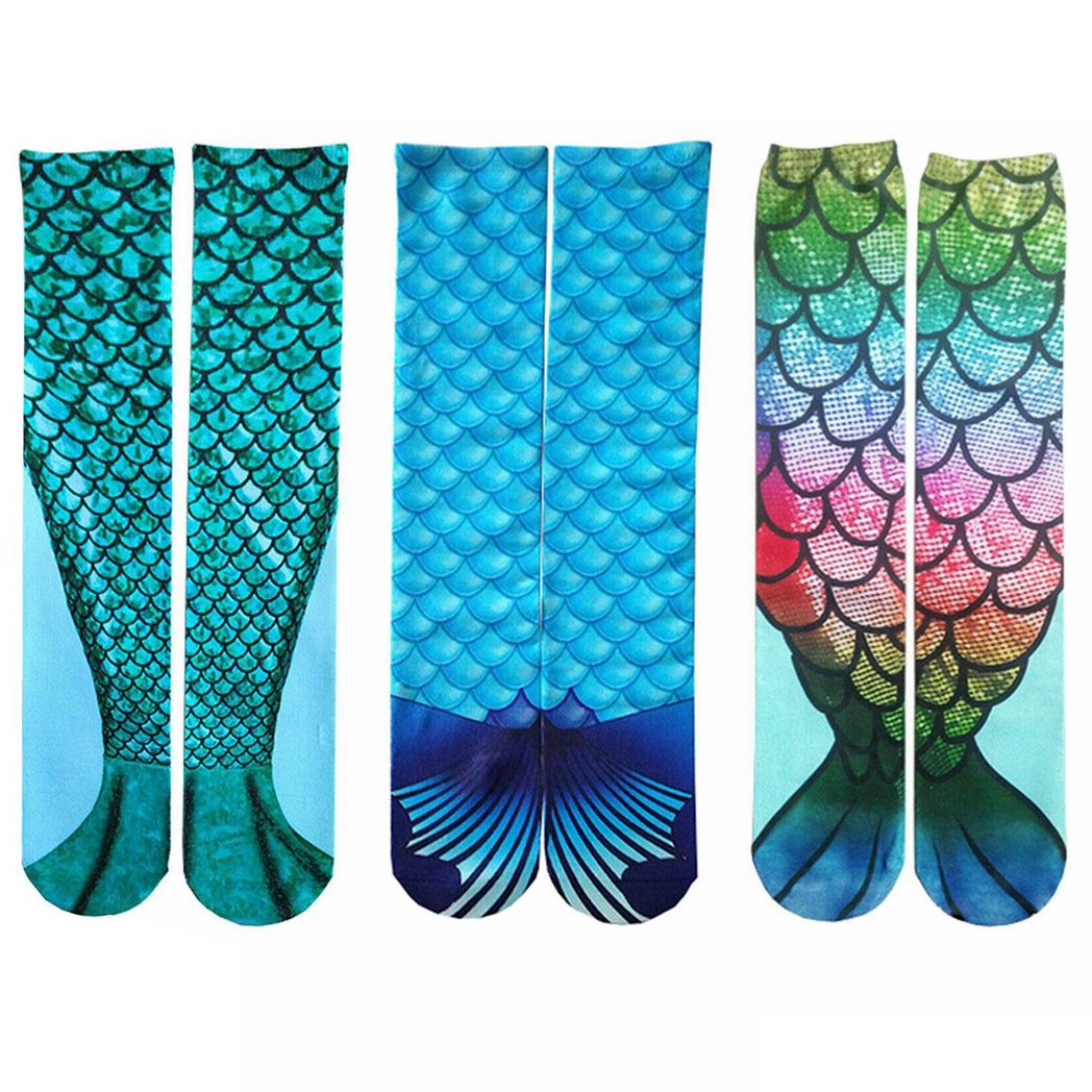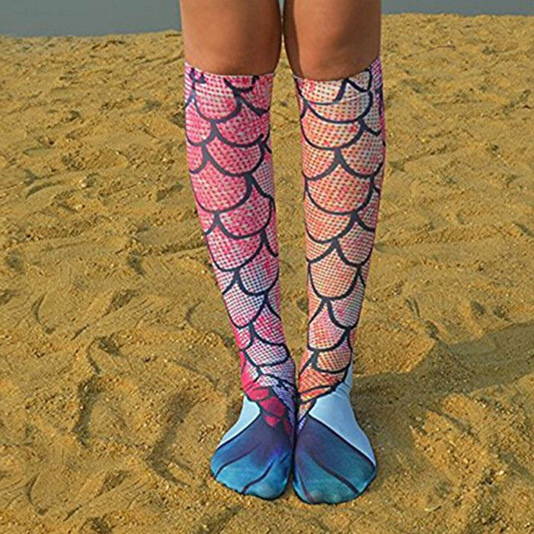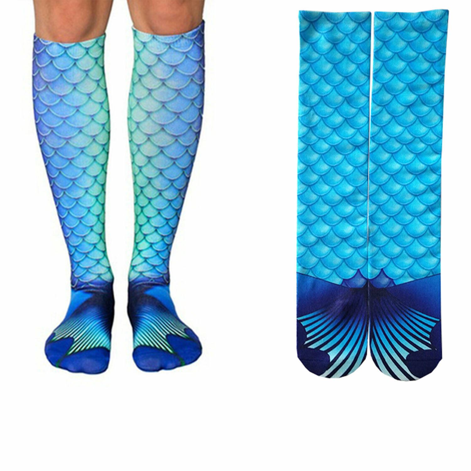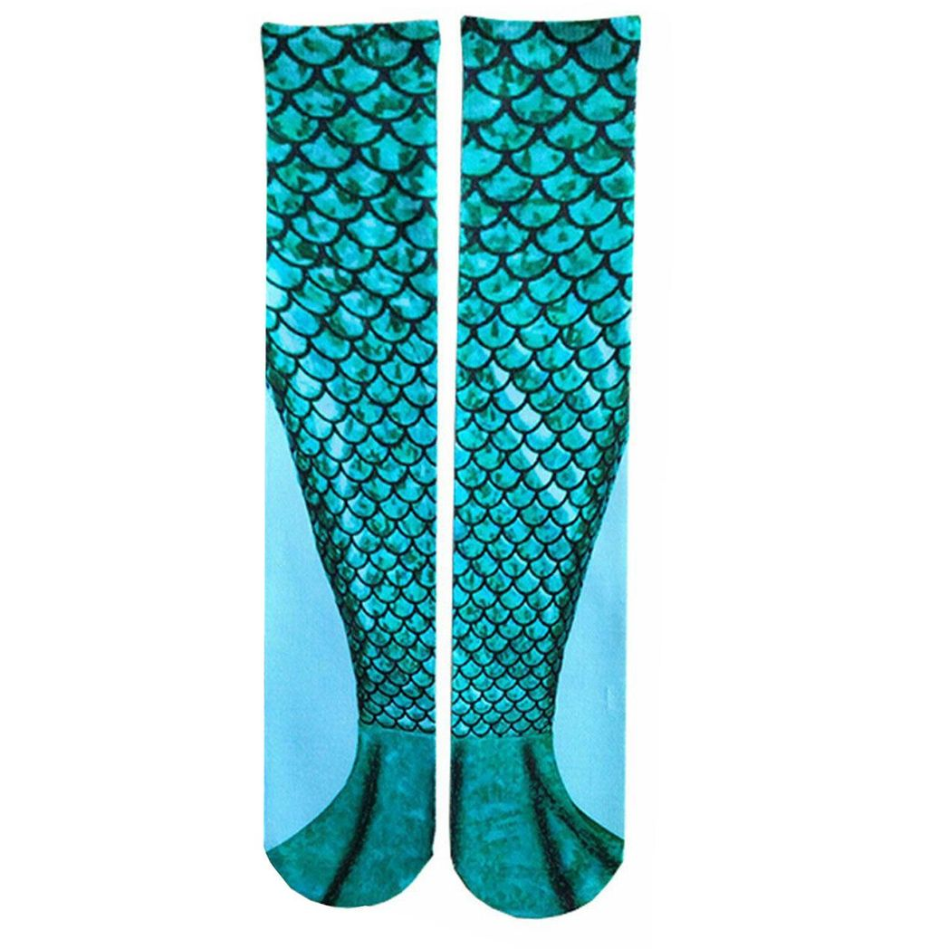 Mermaid Tail Print Women Girl Knee High Boot Socks