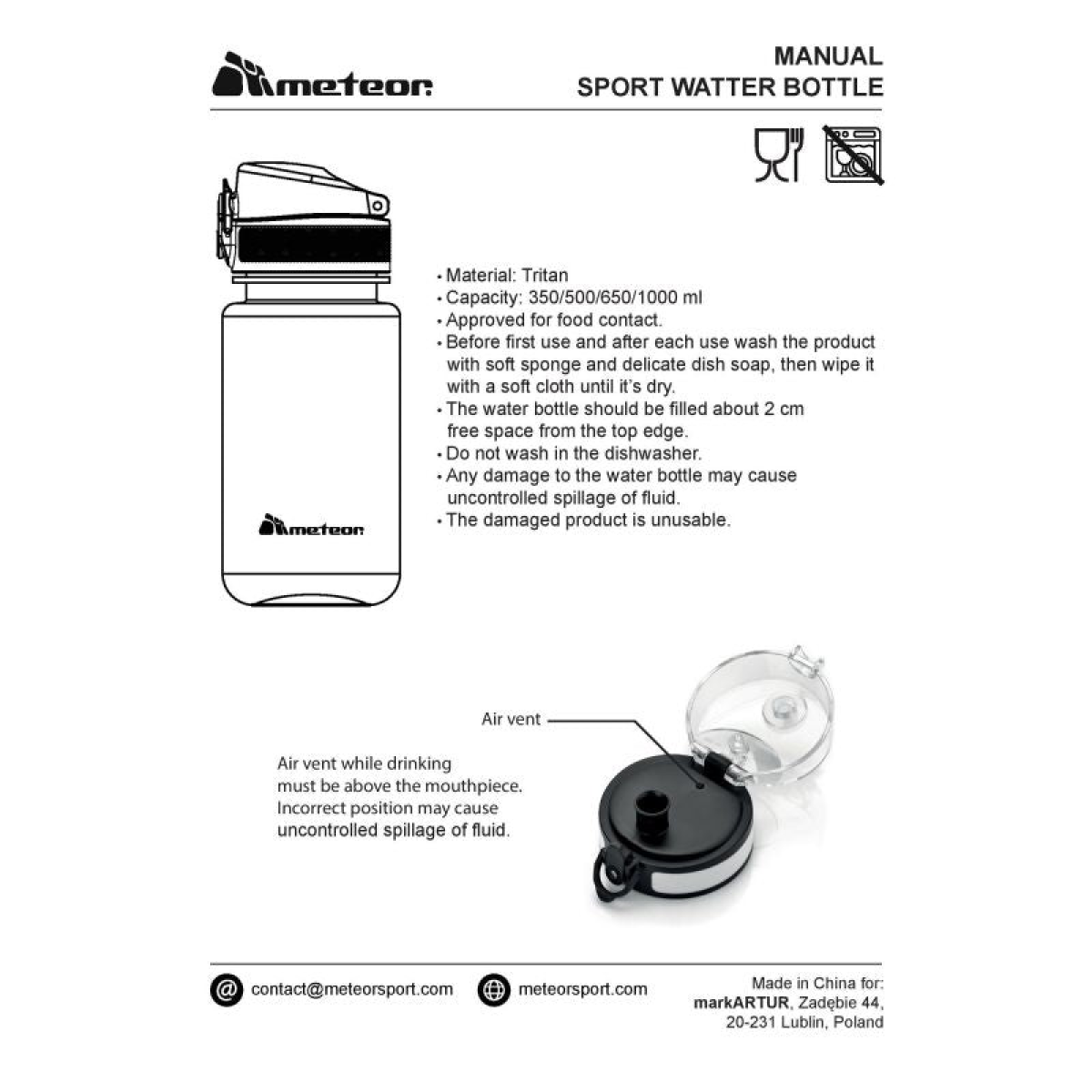 - A practical Meteor water bottle that you can take with you to training, the gym, school, or on a bike ride. The bottle is transparent with a matte finish and a non-slip surface.