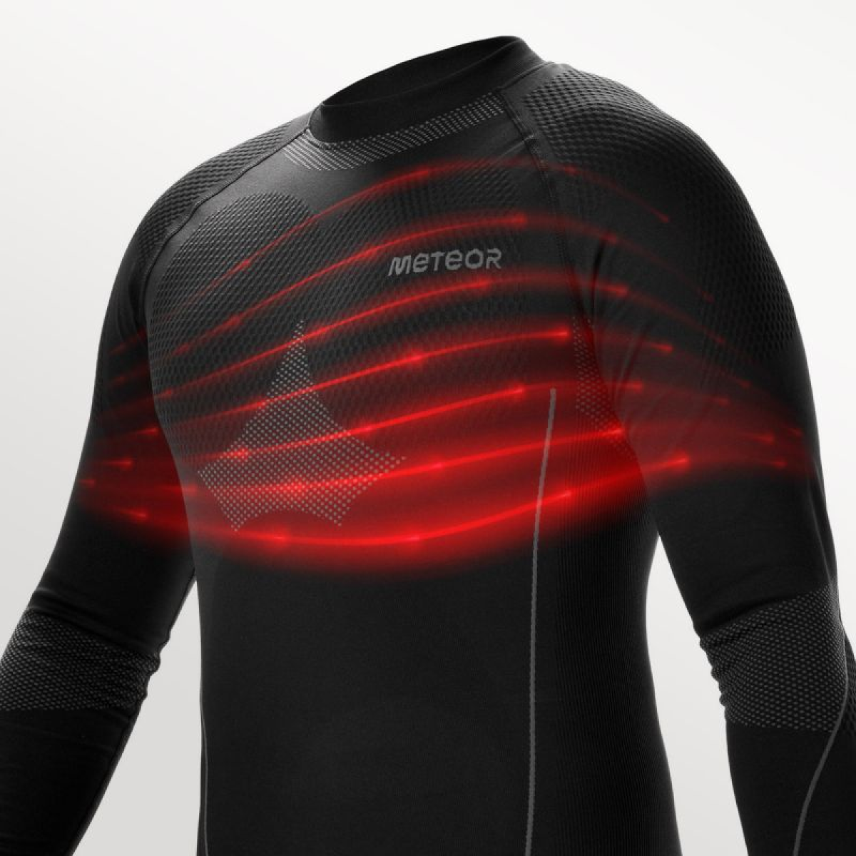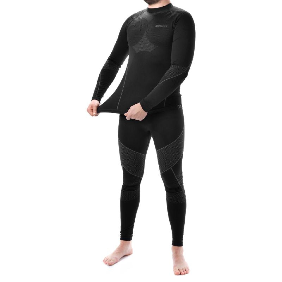 - Meteor men's thermal underwear, composed of a T-shirt and long shorts, effectively protects against cold and guarantees the efficient elimination of excess moisture, ensuring comfort during various types of physical activities.