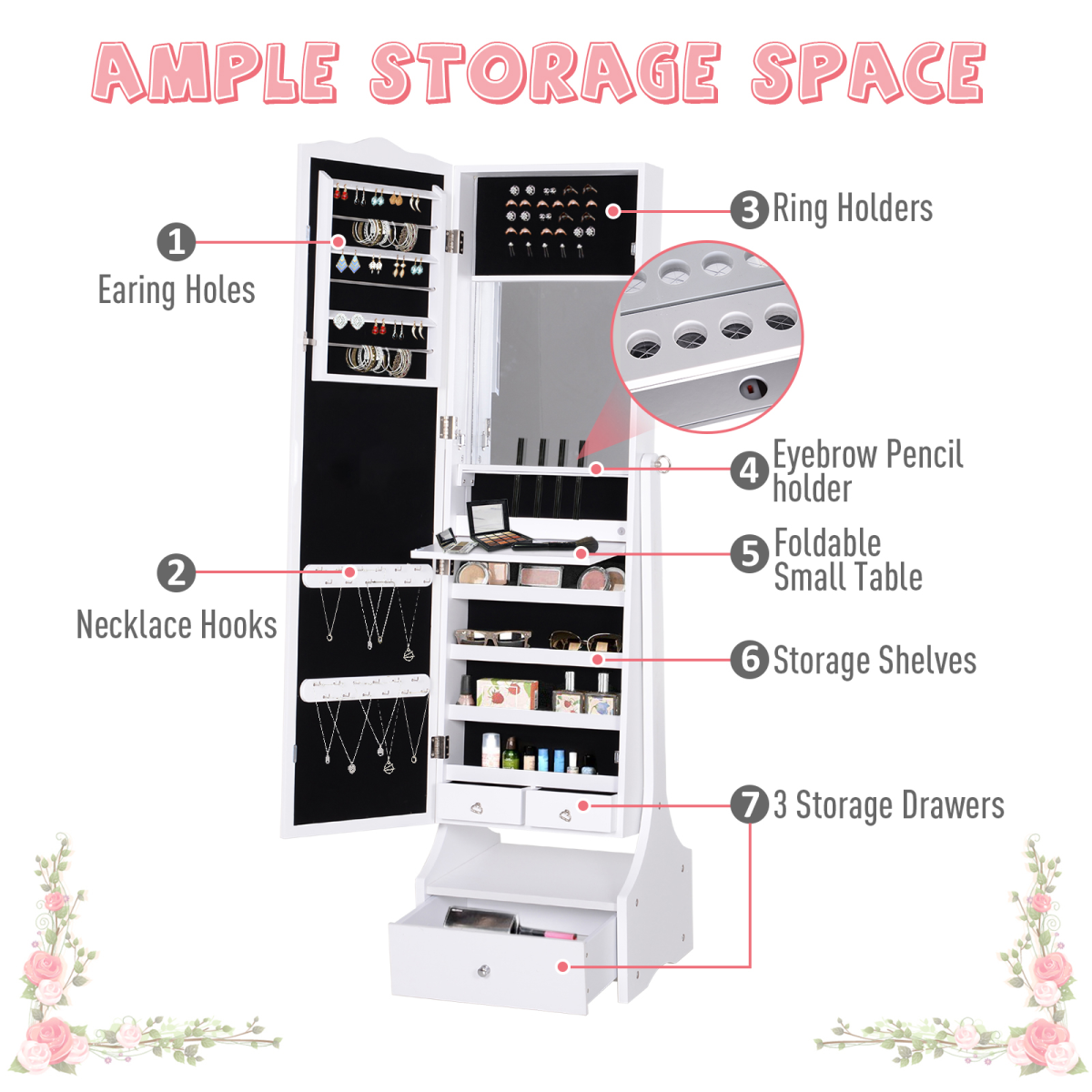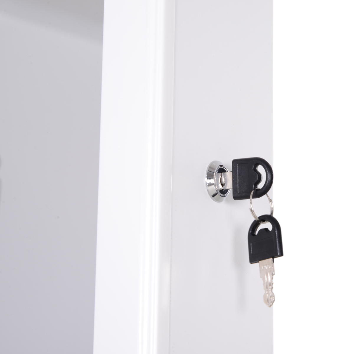 - Mirrored Jewelry Cabinet Armoire Floor Standing Lock, LED Light White