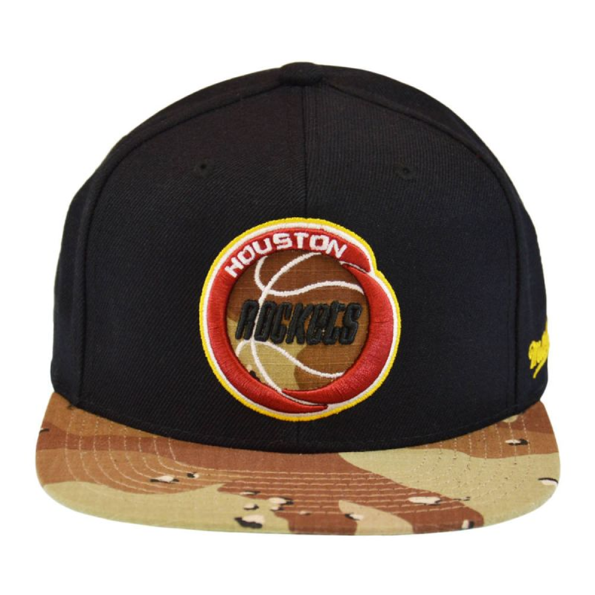 The front panel features a raised, embroidered Houston Rockets logo, and the back features a large, flat inscription "Rockets.