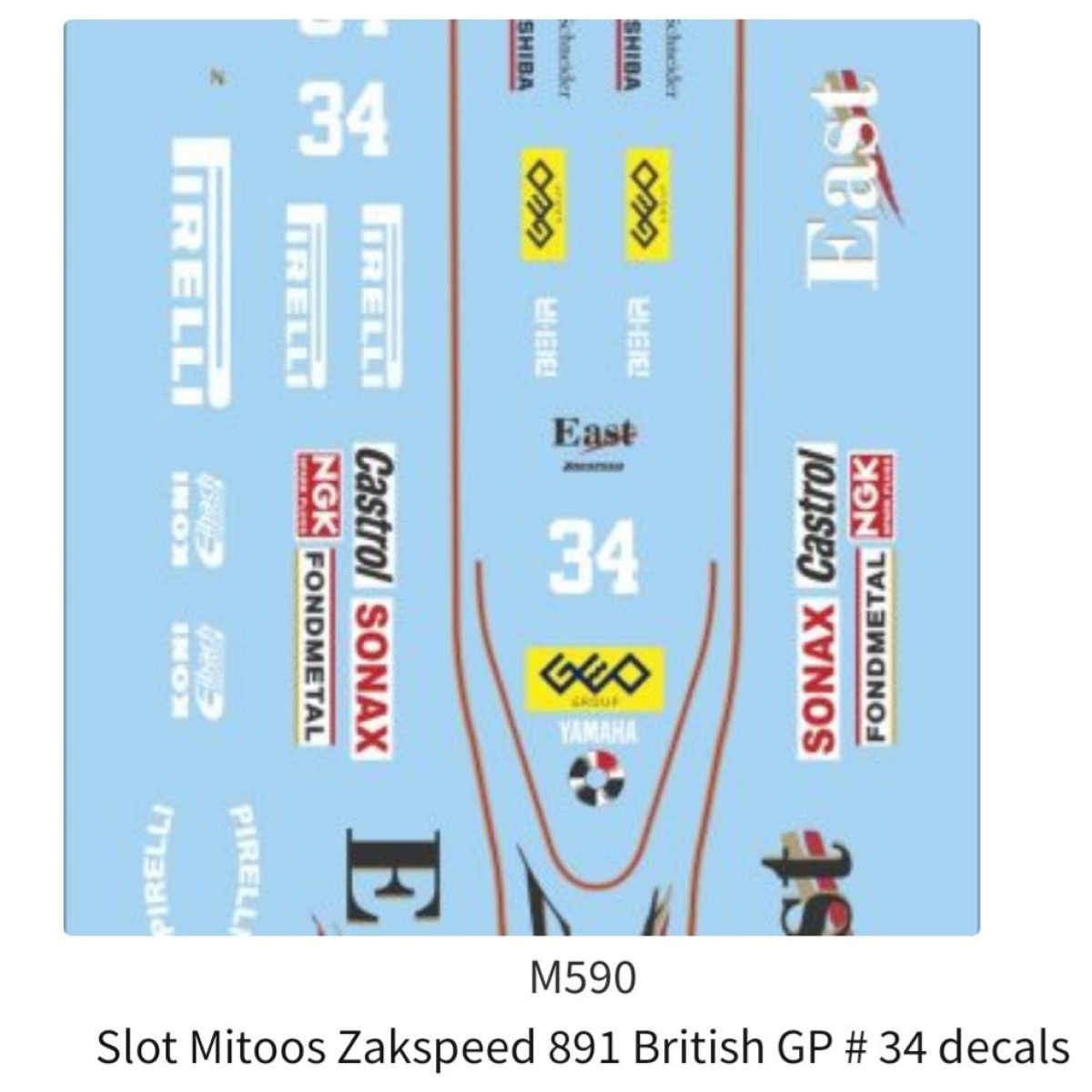 Mitoos M590 Zackspeed 891 British GP #34 1:32 Scale Decals New