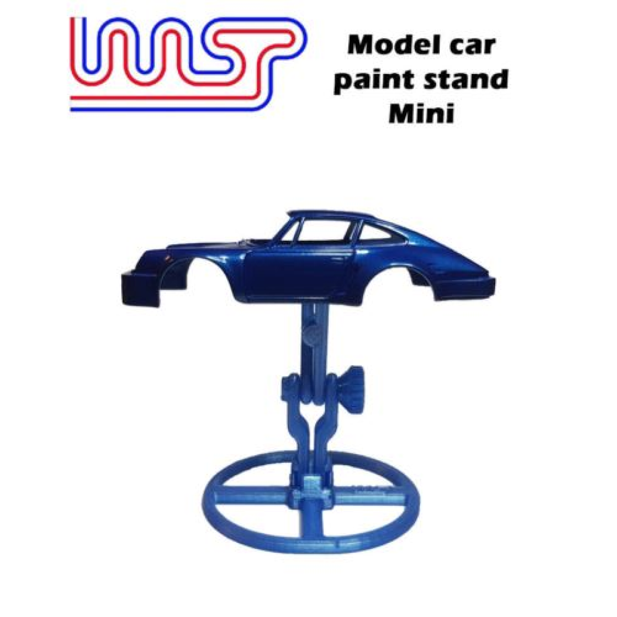 The mini is intended to fit into more compact spaces at just 105mm high such as small spray booths. Its designed to be suitable for 1:48 to 1:32 scale (please check body sizes against max/min dims in pics) The spring pushed the legs apart against the inside of the car body, the rubber rings help to hold it securely in place. The angle of the arms can be adjusted and locked in place with the locking clamp. Both stands are made from PLA plastic material so should not be exposed to temperatures in excess of 40Deg C. The locking nut is designed to hold the angle the jig is set at, over tightening will cause damage