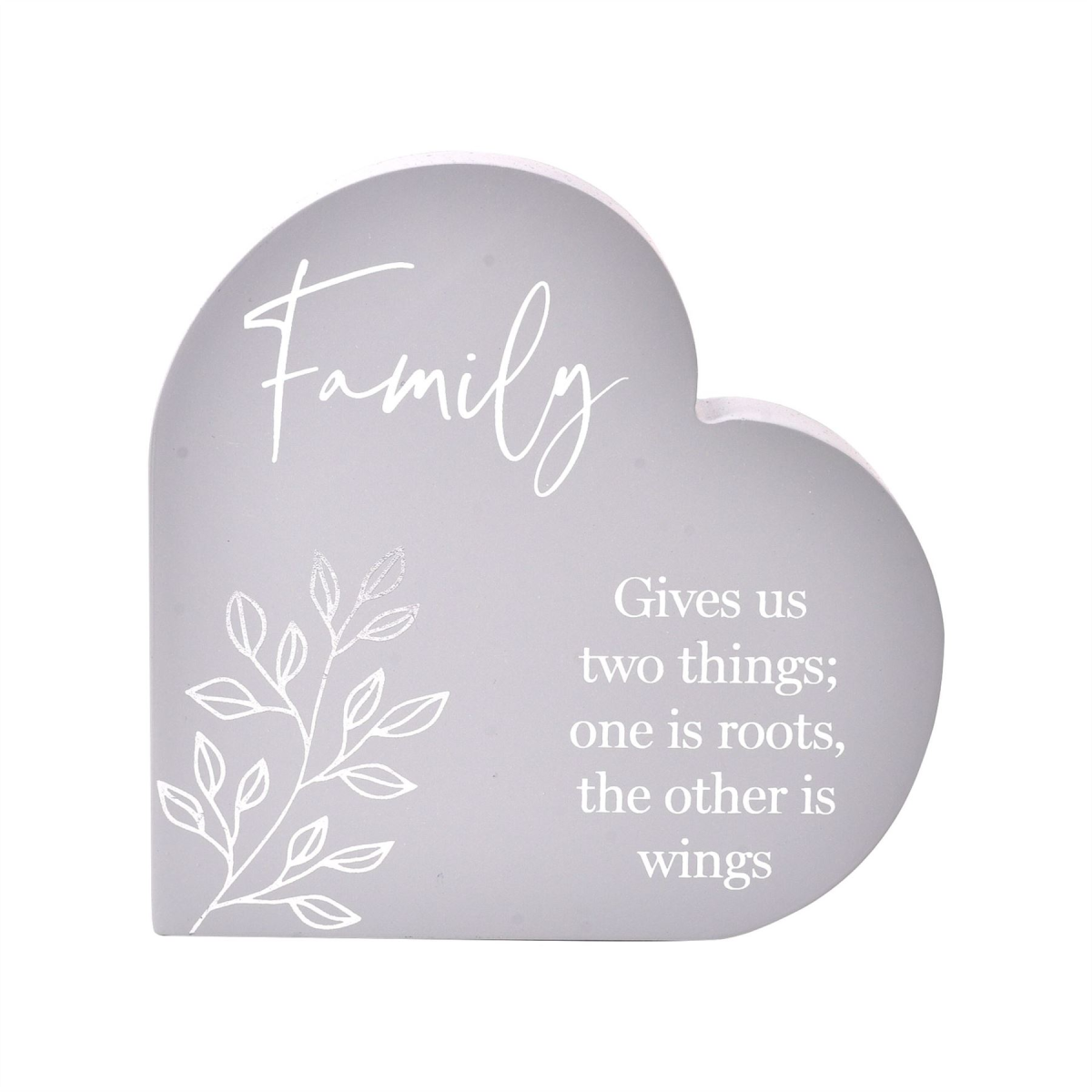 This heart plaque would be a thoughtful and sentimental addition to any family home. This timeless ornament features a beautiful quote and floral leaf design that would be an ideal gift option. Details: -Sentimental Heart Plaque -Printed family quote -MDF -15cm