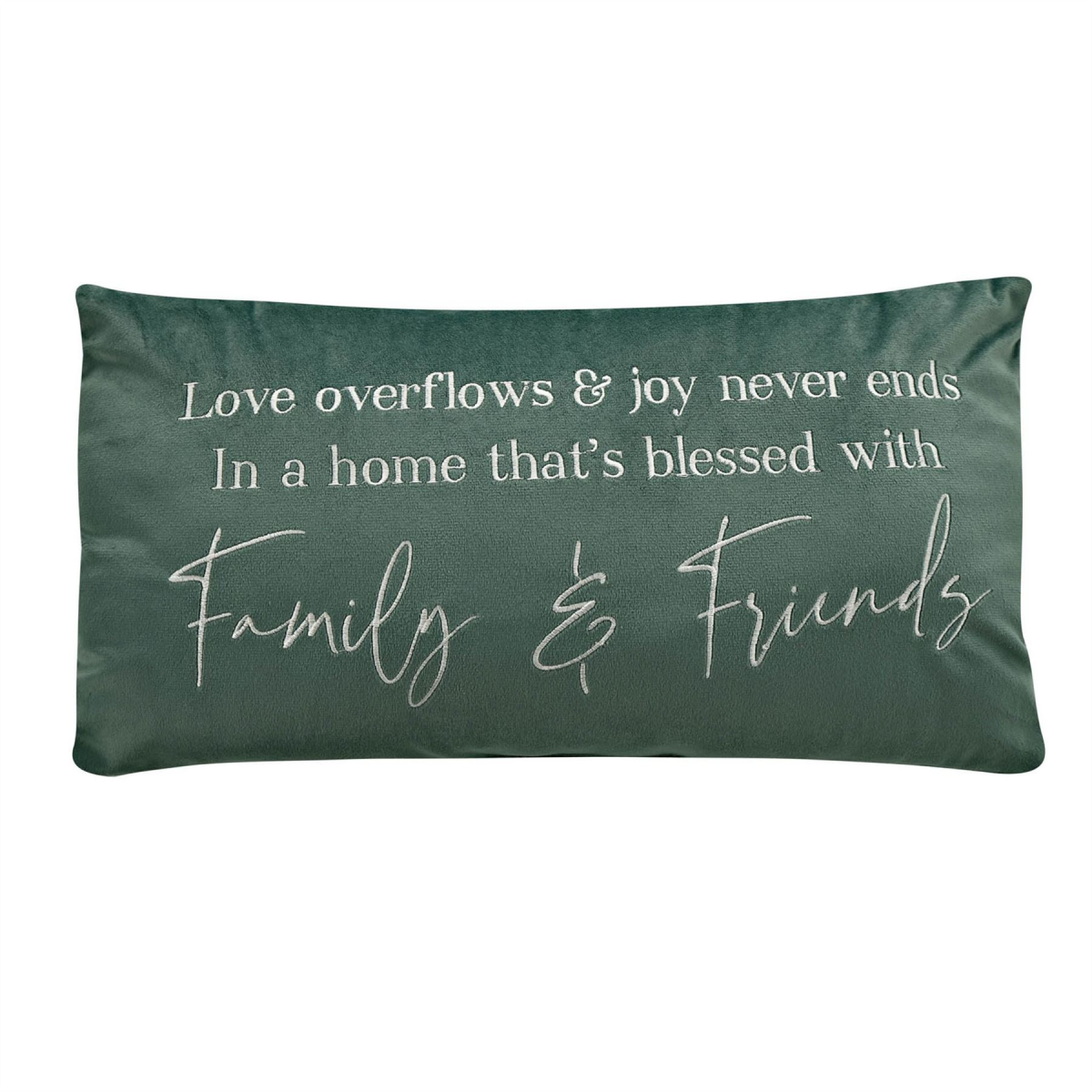 A cosy addition to any family home, this stylish cushion features a sentimental quote sure to bring a smile to anyone's face. Details: Rectangle Cushion Green 'Love overflows...' embroidered quote Stylish homeware option