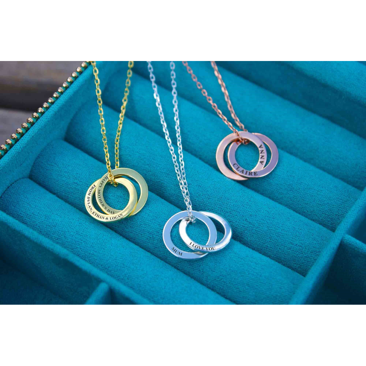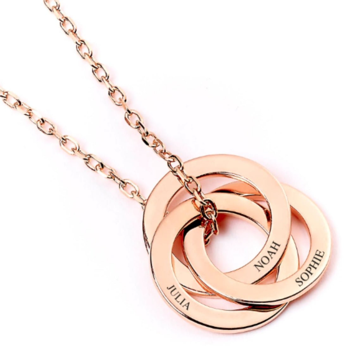 Looking for the perfect gift for Mother's Day? Our 9ct Rose Gold Plated 925 Sterling silver personalised Ring Necklace lets you choose 1, 2, 3, or 4 rings, and the chain length (16", 18", 20", 22", or 24")!