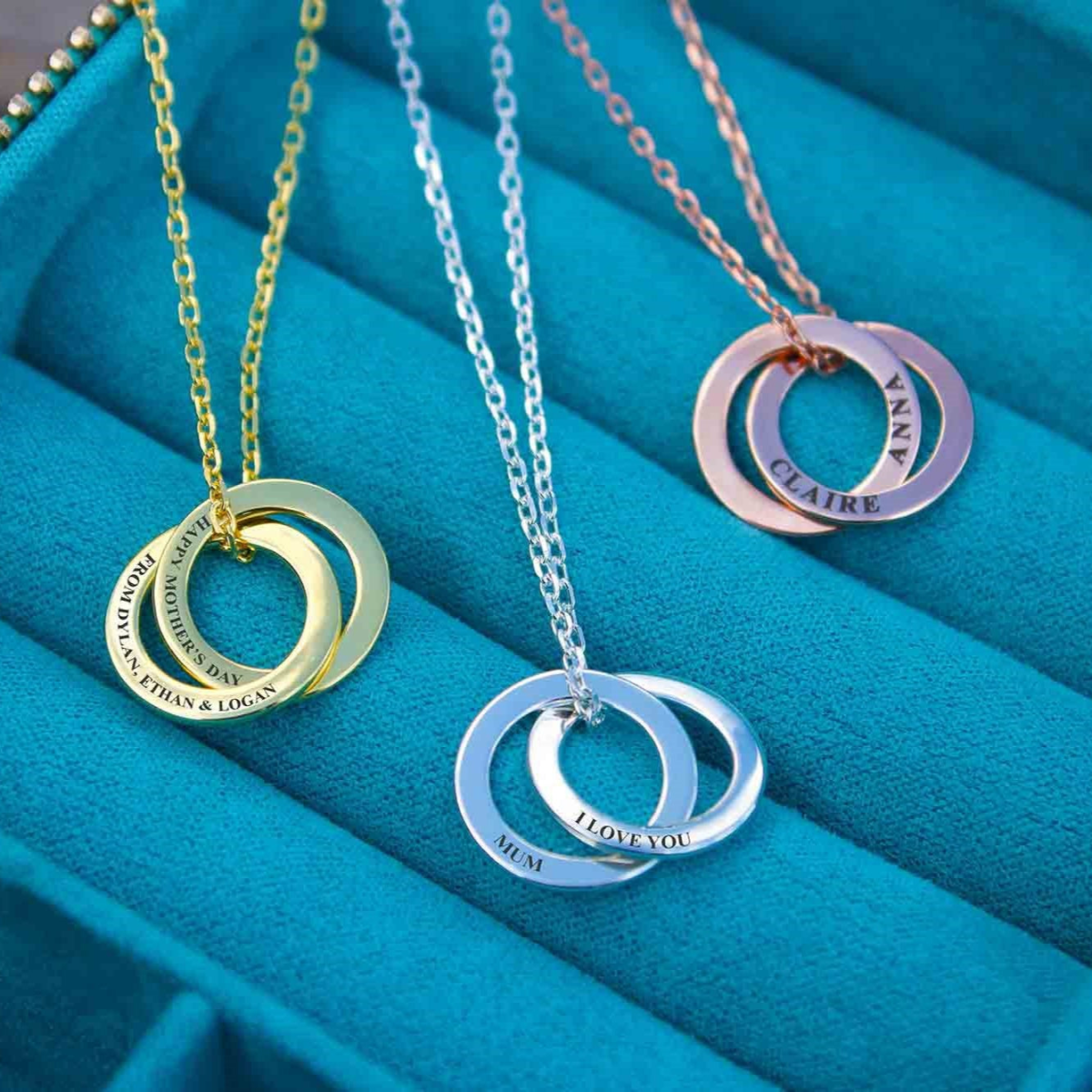 Looking for the perfect gift for Mother's Day? Our 925 Sterling silver personalised Ring Necklace lets you choose 1, 2, 3, or 4 rings, and the chain length (16", 18", 20", 22", or 24")!